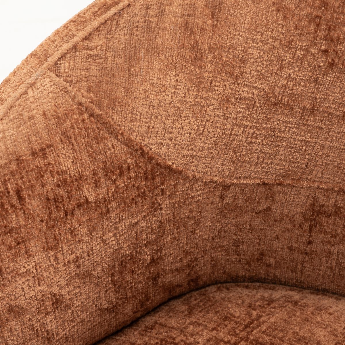 Drehstuhl Rumble in Kupfer mit abgerundeten Formen und drehbarem Fuß. .. mehr
