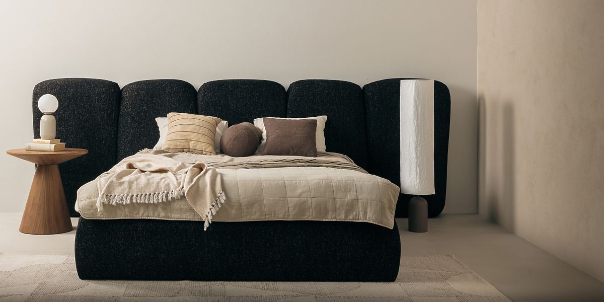 Lukahome.at » Postele / Manželské postele / Postele 160x200 / Gepolstertes Bett Fencee 160x200 cm, mit Lattenrost, abgerundet, schwarz