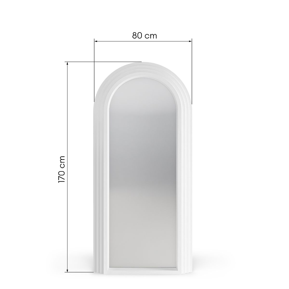 Dekoratives Hängespiegel mit weißem Bogenrahmen und klarem Spiegelbild. .. mehr