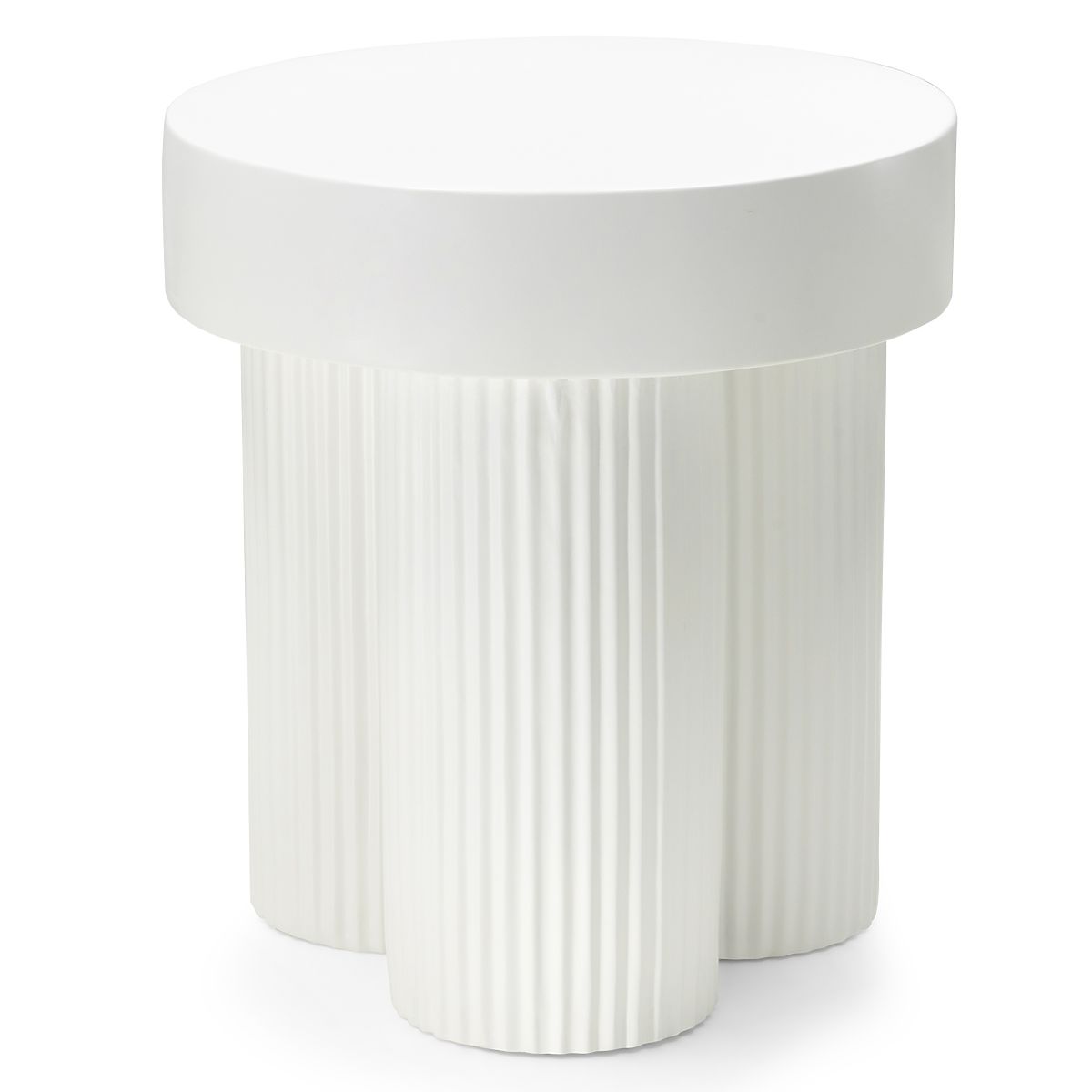 Runder weißer Couchtisch mit gerillter Basis aus Fiberglas. .. mehr