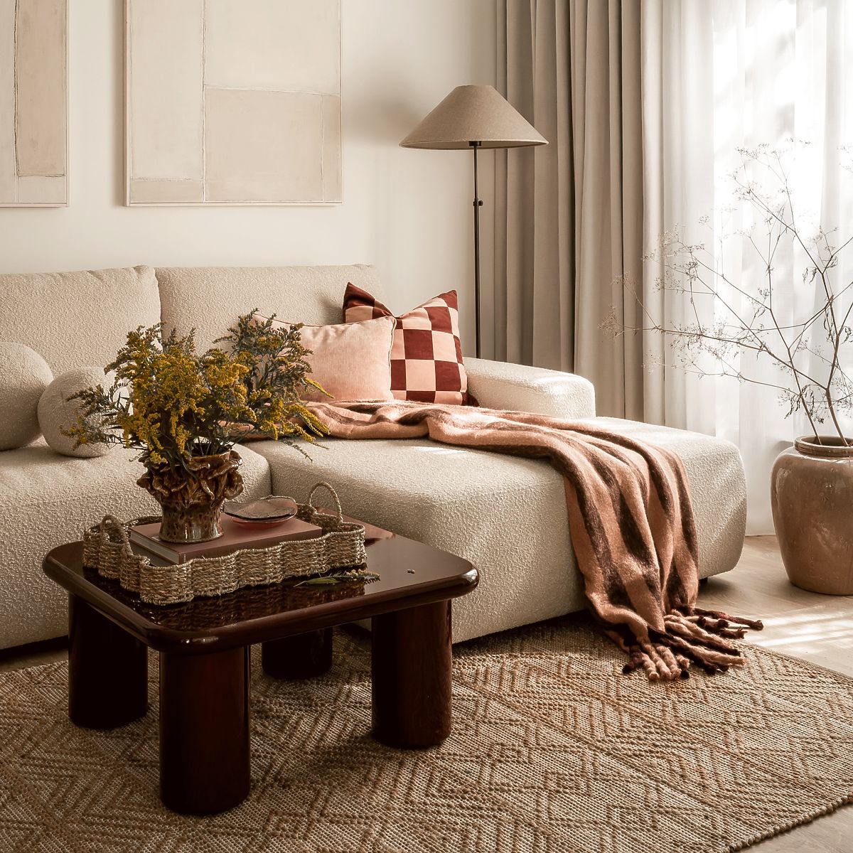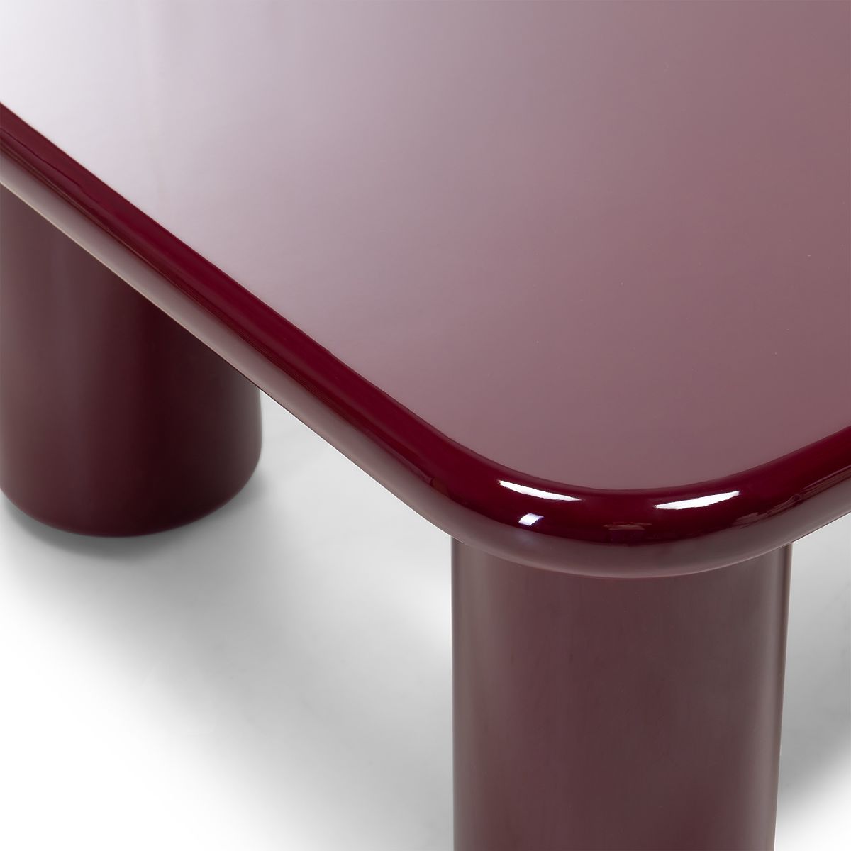 Quadratischer Tisch mit abgerundeten Kanten und glänzendem burgunderrotem Finish. .. mehr
