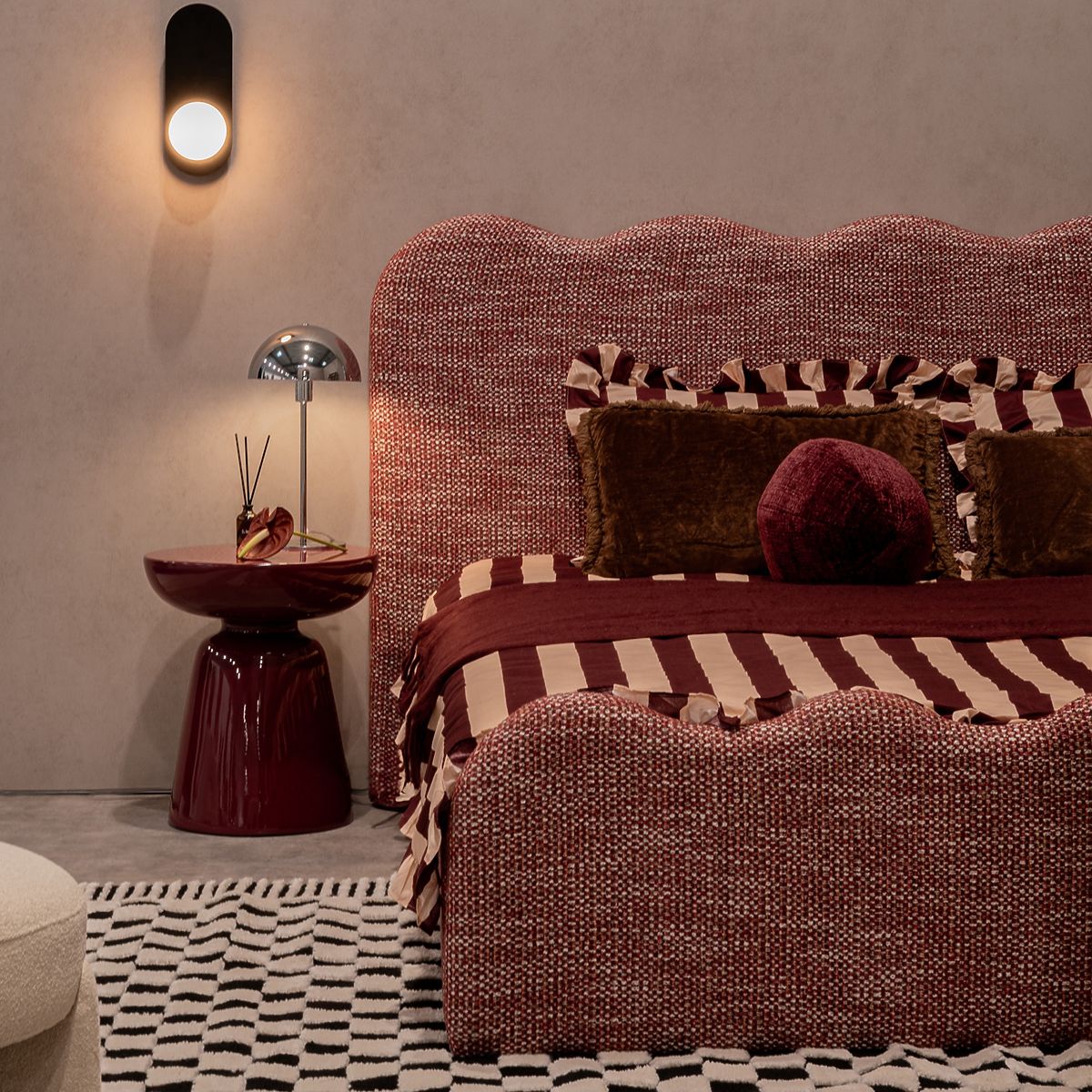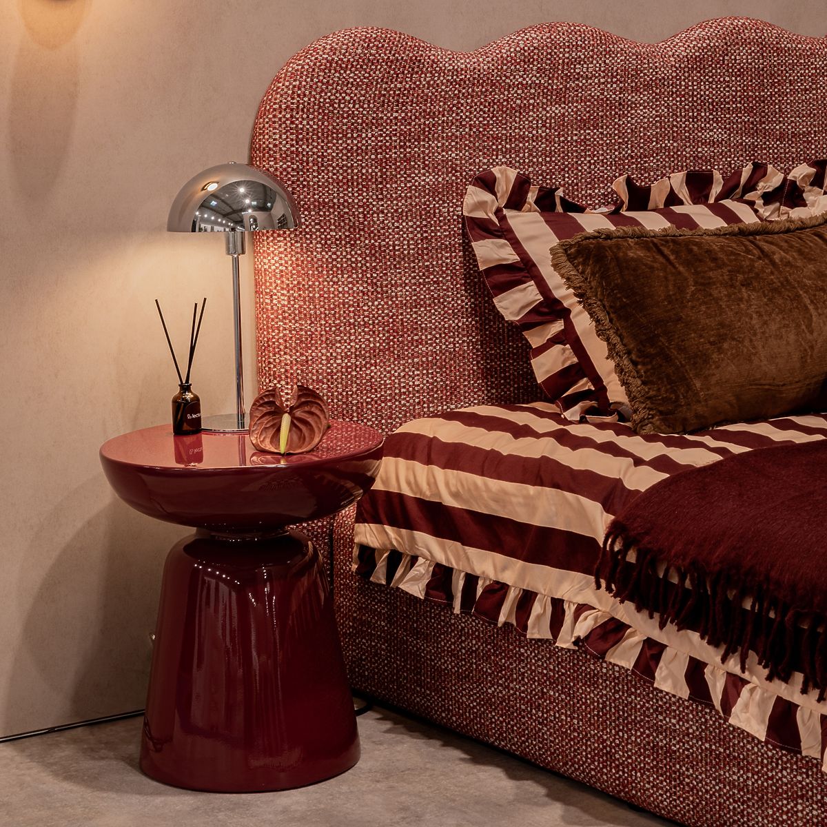 Tisch aus langlebigem Magnesiumoxid in Burgunder-Kirsch-Farbe. .. mehr