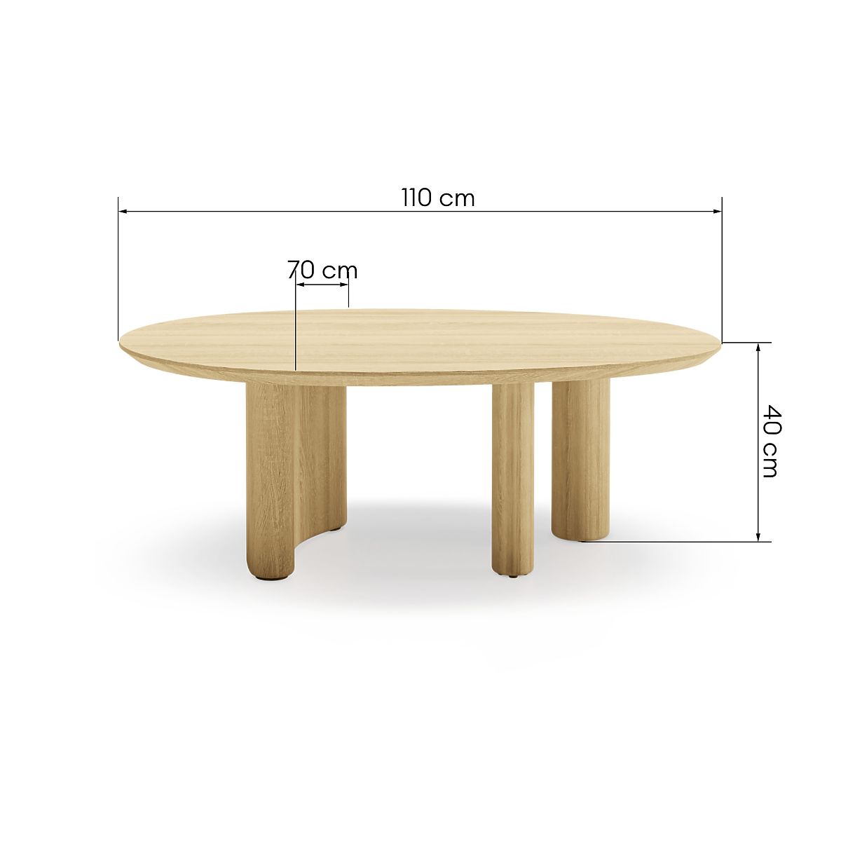 Ovaler Tisch mit drei stabilen Beinen aus Natur-Eiche. .. mehr