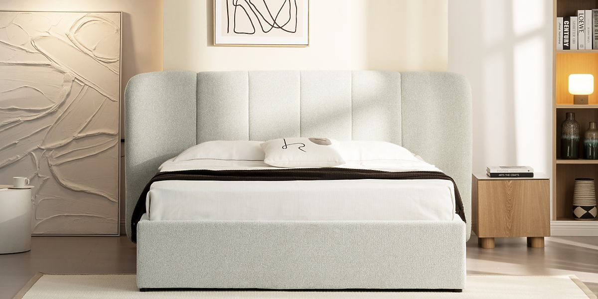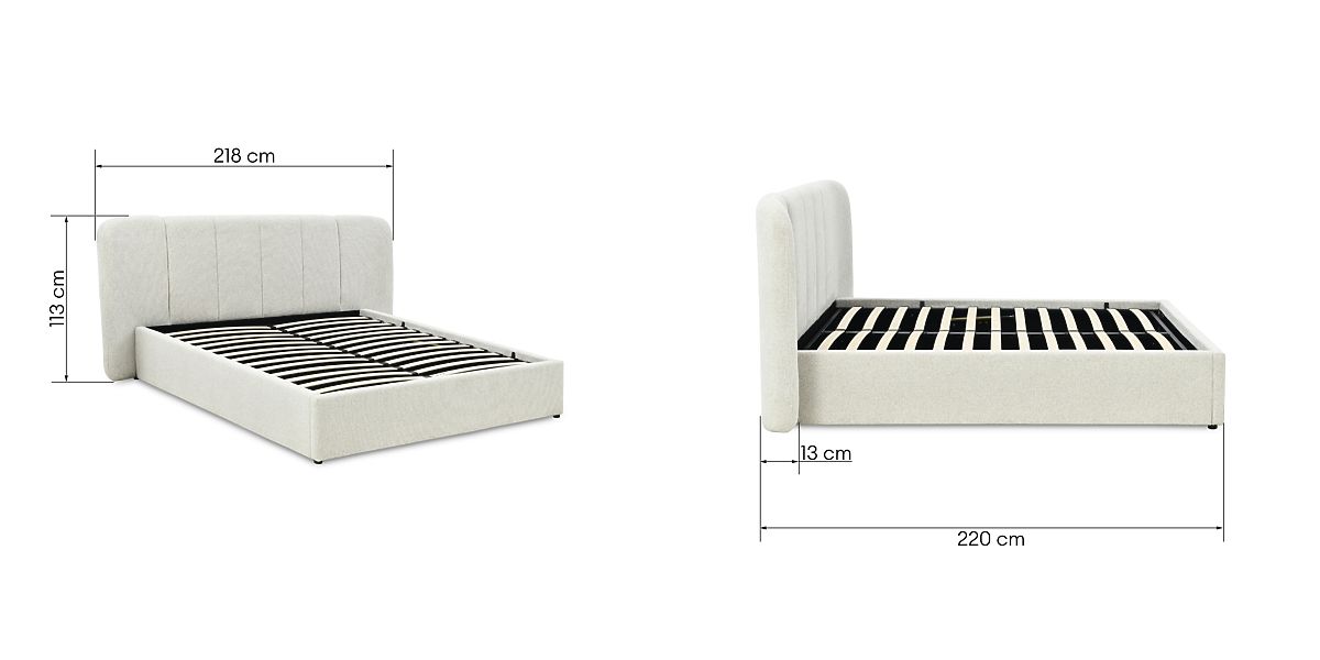 Gepolstertes Bett Snoovia mit Stauraum und Lattenrost, hellbeige. .. mehr