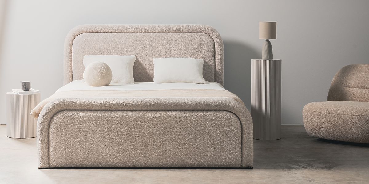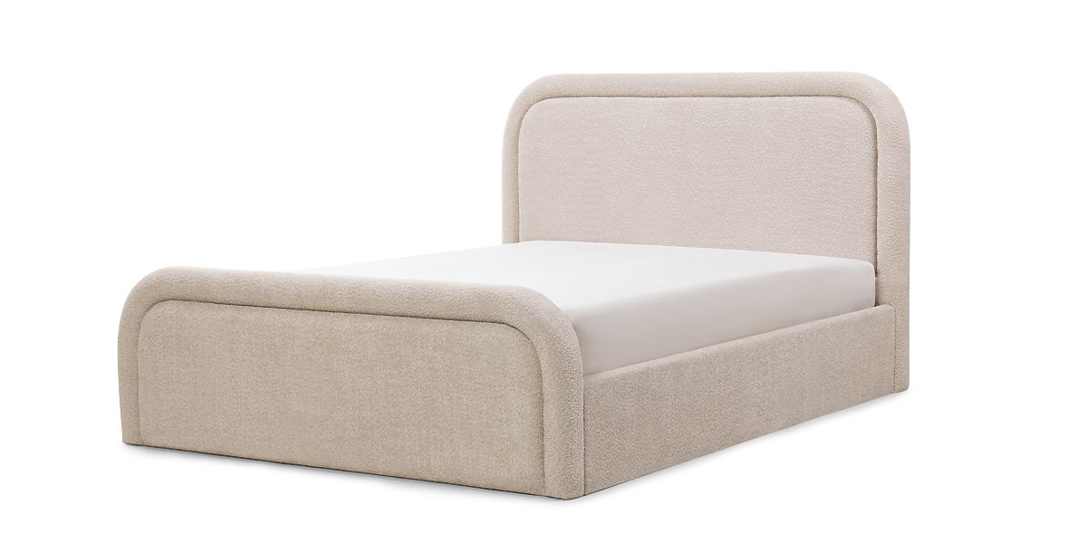 Gepolstertes Bett Ovoid 140x200 cm, mit Lattenrost und Stauraum, abgerundet, beige