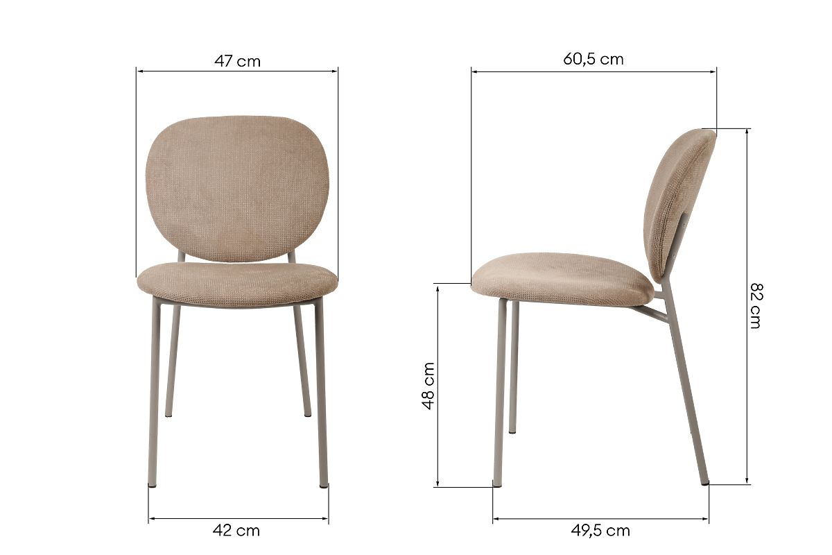 Esszimmerstuhl mit hellbraunem Bezug und beigen Metallbeinen. .. mehr