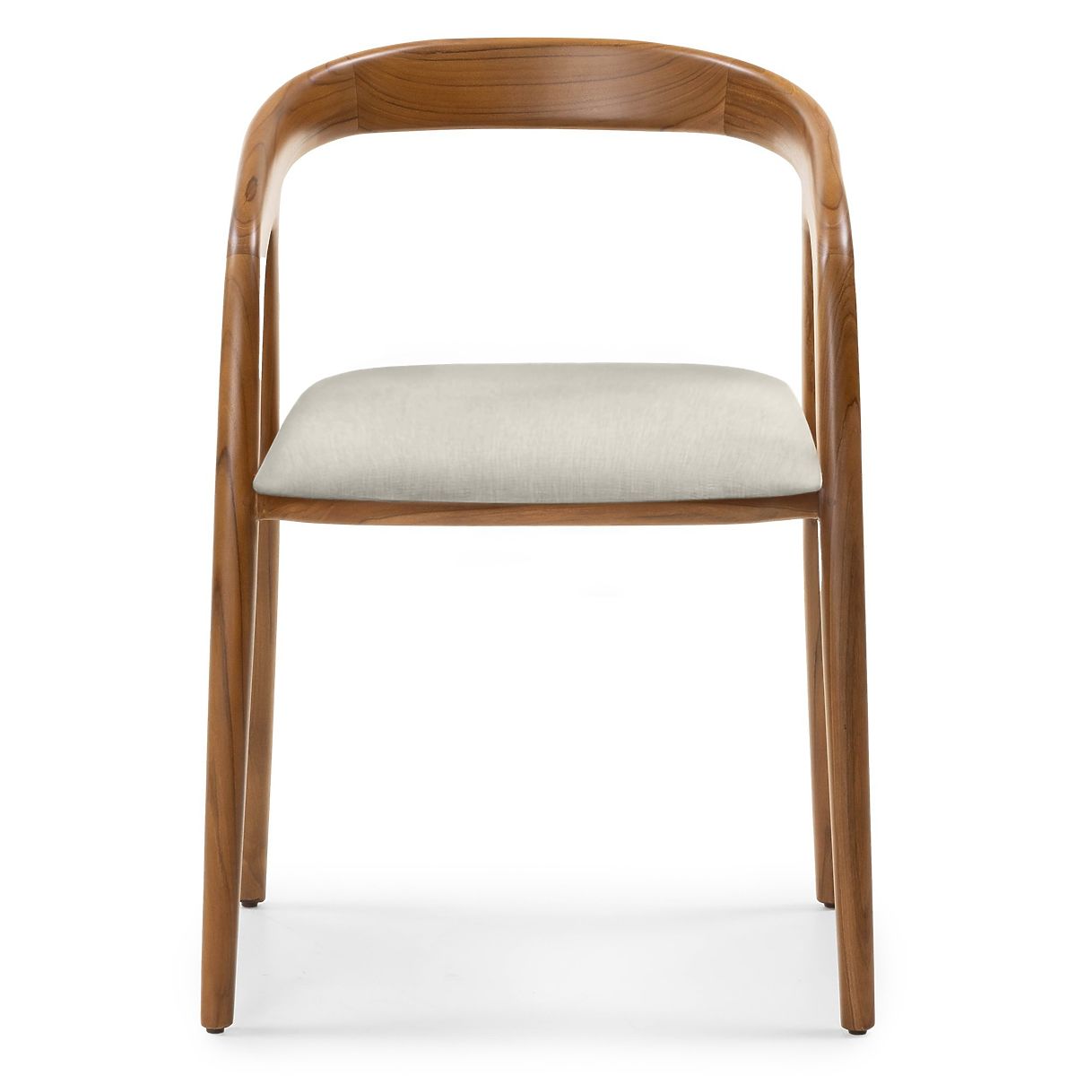 Abgerundeter Holzstuhl Sande aus Teakholz mit cremefarbenem Sitz. .. mehr