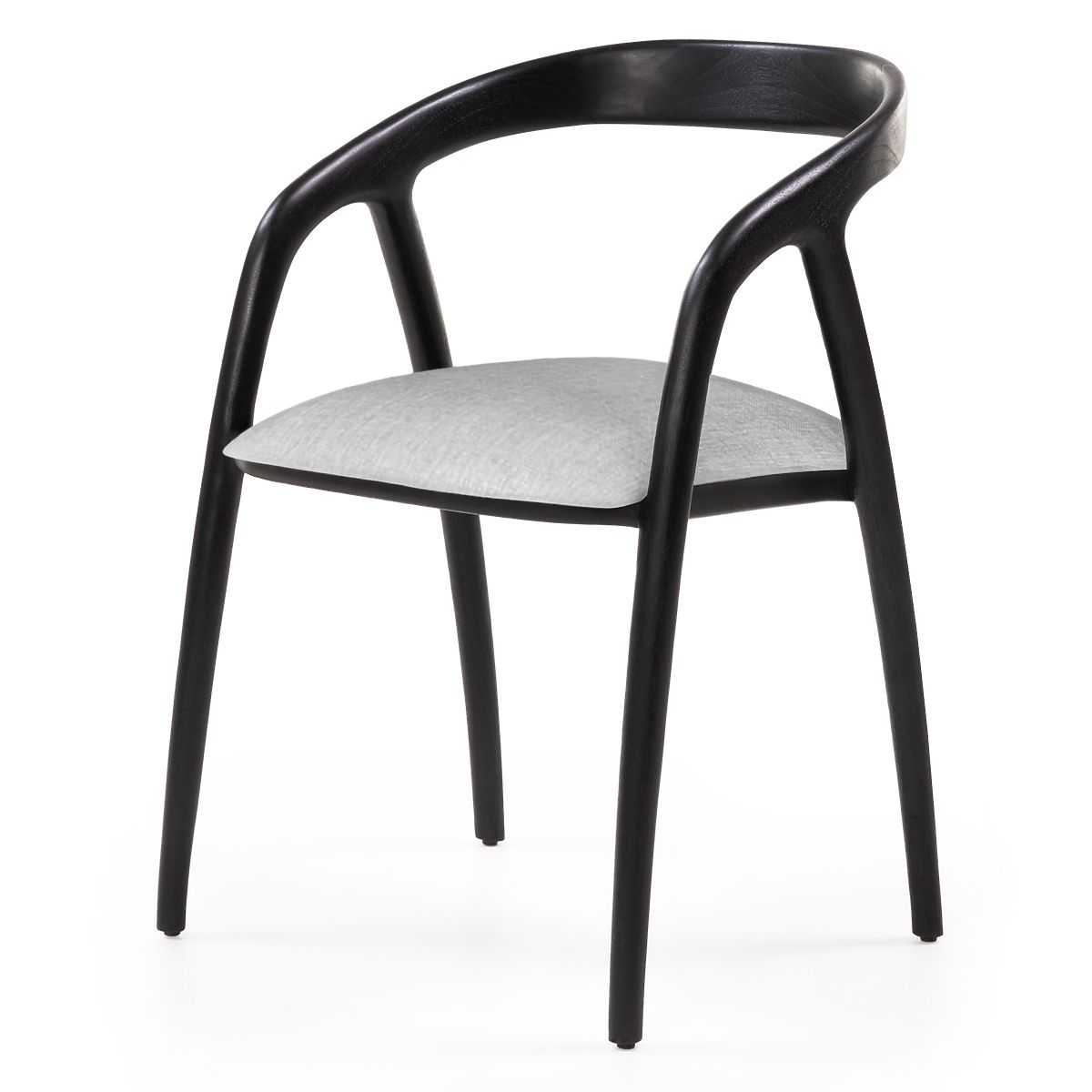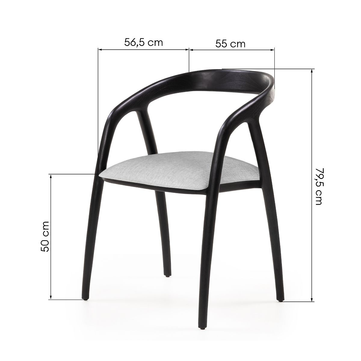 Esszimmerstuhl Sande aus Teakholz mit abgerundetem Design in Schwarz und Hellbeige. .. mehr