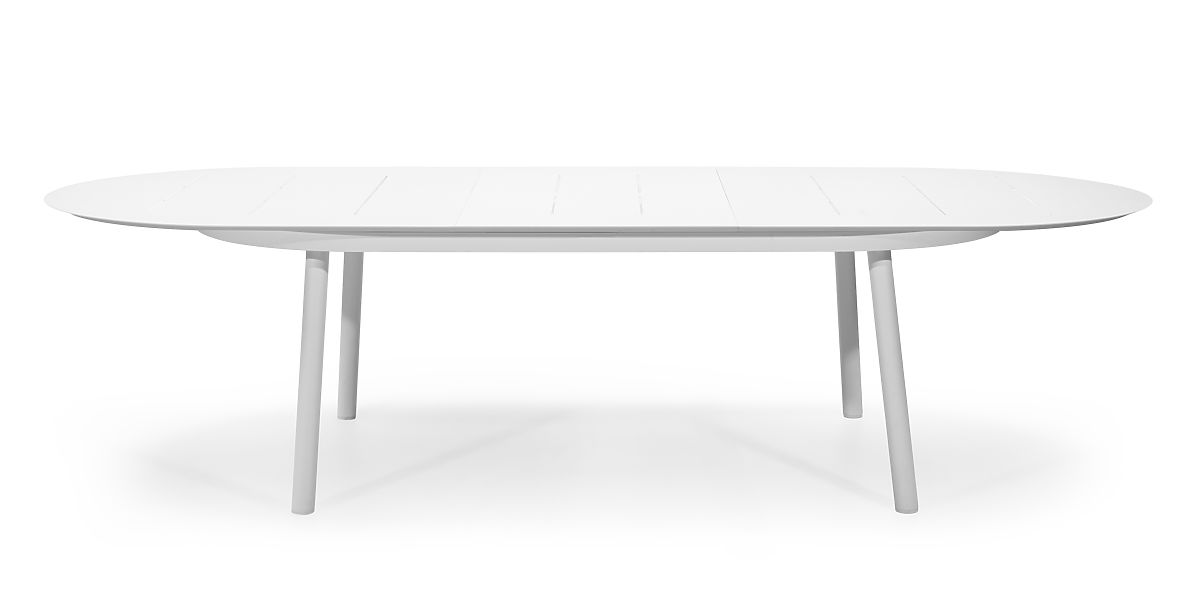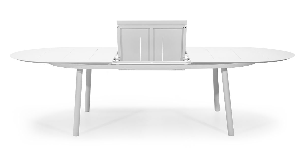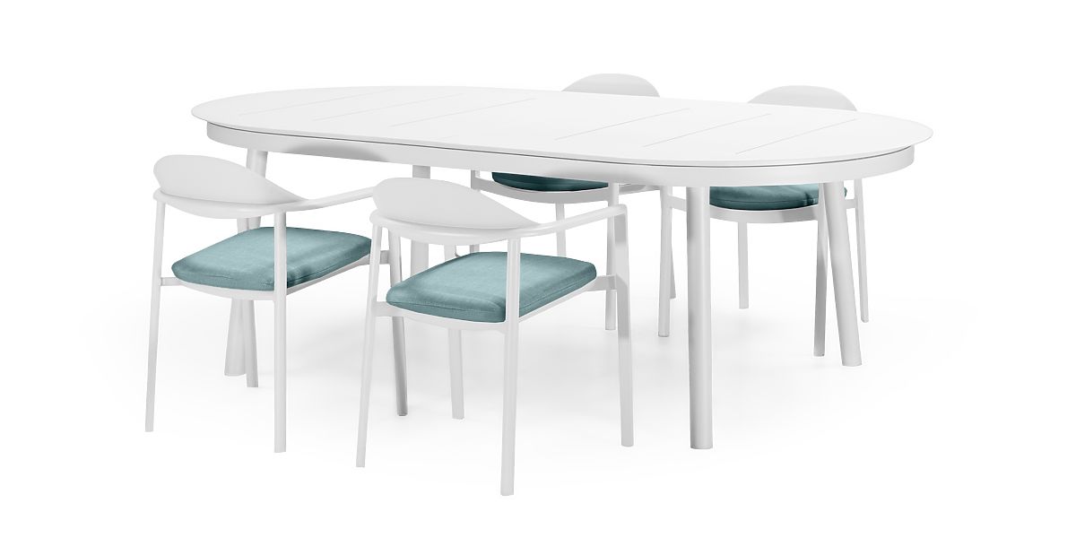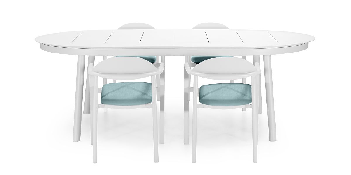 Ausziehbarer Tisch und vier Stühle aus pulverbeschichtetem Aluminium. .. mehr