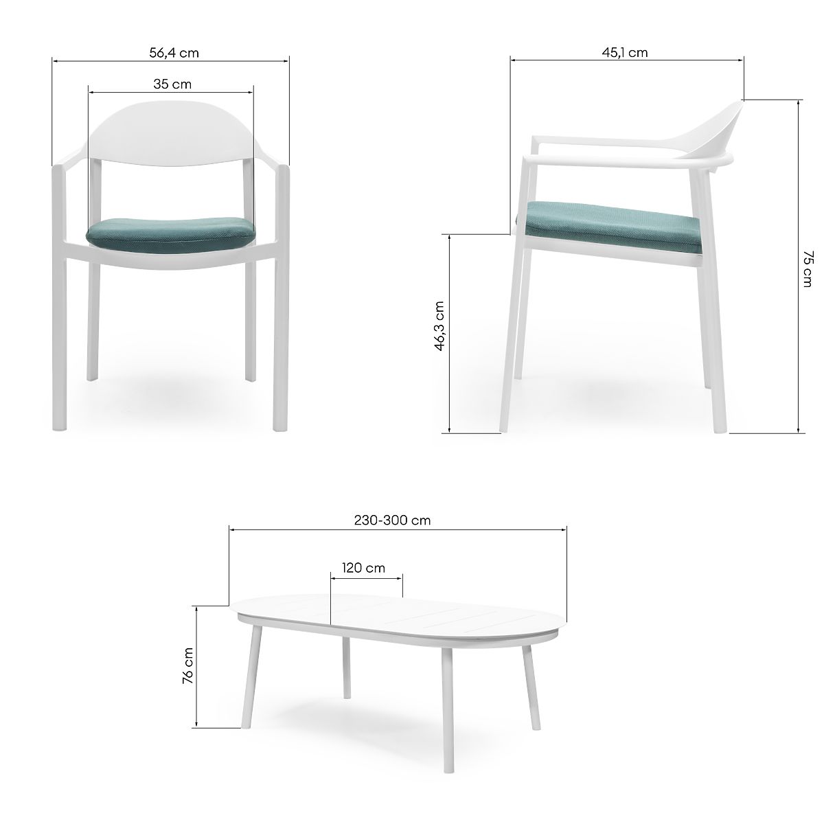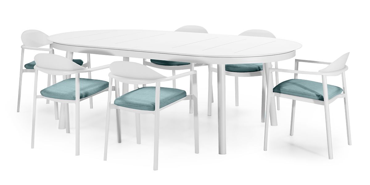Ausziehbarer Tisch und 6 Stühle aus pulverbeschichtetem Aluminium. .. mehr