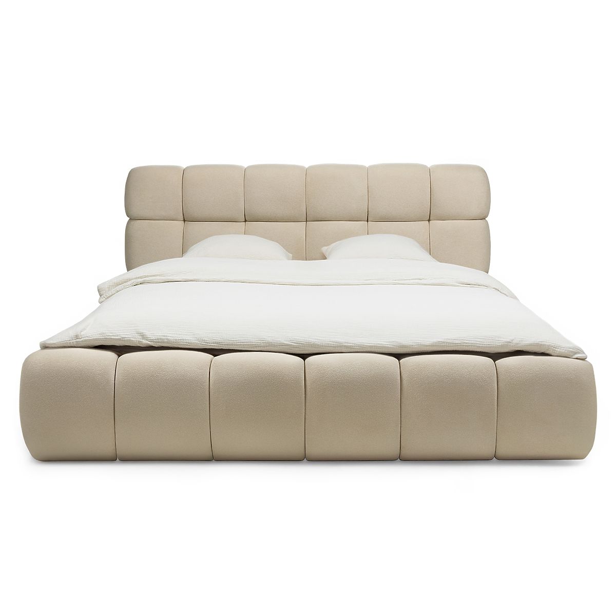 Lukahome.at » Postele / Manželské postele / Postele 160x200 / Gepolstertes Bett Nexo 160x200 cm, mit Lattenrost und Stauraum, hellbeige, abgerundete Formen