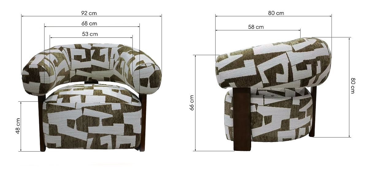 Relaxstuhl Maribel mit oliv-cremefarbenem Bezug und nussbaumfarbenen Beinen. .. mehr