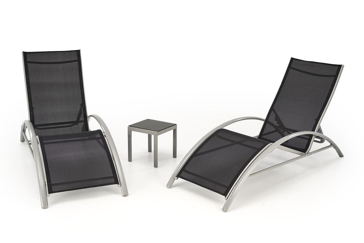 Set aus 2 Liegen und einem Tisch in Schwarz und Hellgrau .. mehr