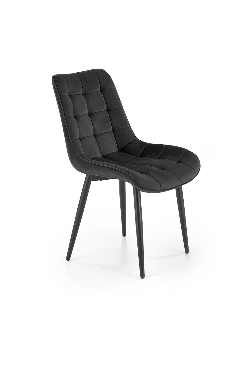 Schwarzer Samtstuhl mit pulverbeschichtetem Stahlrahmen. .. mehr