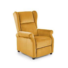 Der stilvolle und bequeme ausziehbare Sessel AGUSTIN 2 ist die ideale Wahl für Entspannung im Wohnzimmer. Der elegante Samtbezug in modischem Senfgelb verleiht dem Interieur Frische und ein markantes Designelement. Der weiche Sitz, die hohe Rückenlehne mit seitlichen "Ohren" und praktische Armlehnen sorgen für maximalen Komfort beim Sitzen. Dank der Ausziehfunktion und der ausziehbaren Fußstütze können Sie sich perfekte Entspannung oder ein kurzes Nickerchen während des Tages gönnen.
