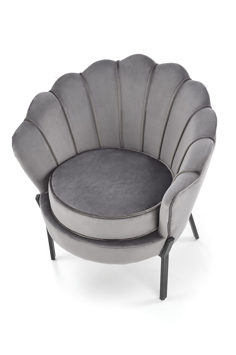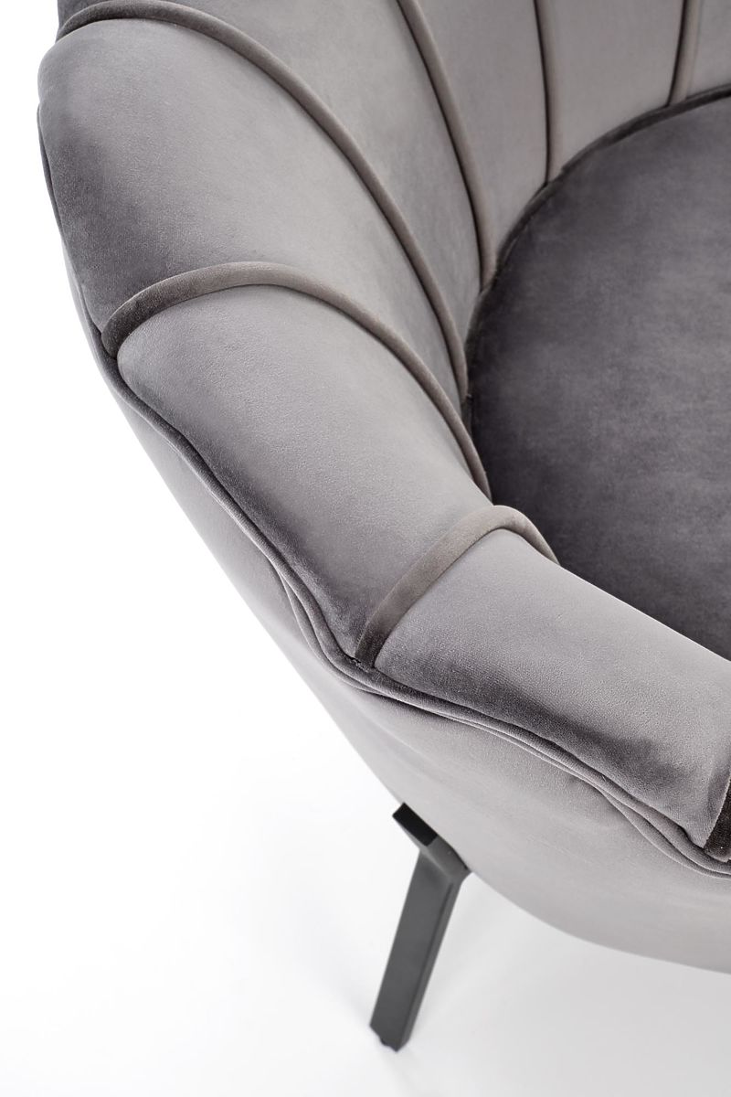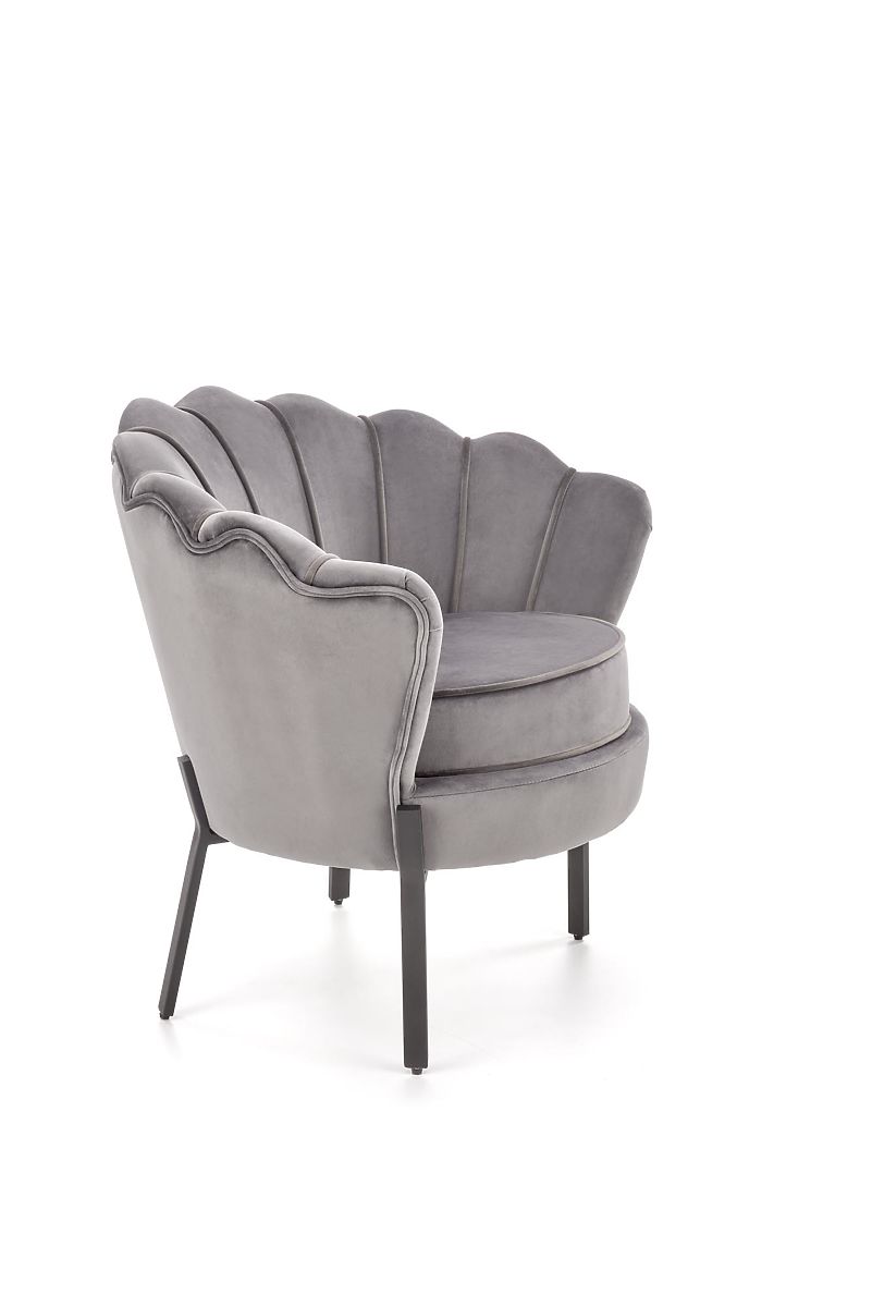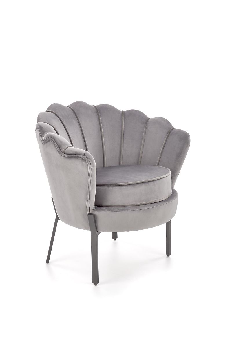 Grauer Relaxsessel ANGELO aus Samt und Stahl. .. mehr