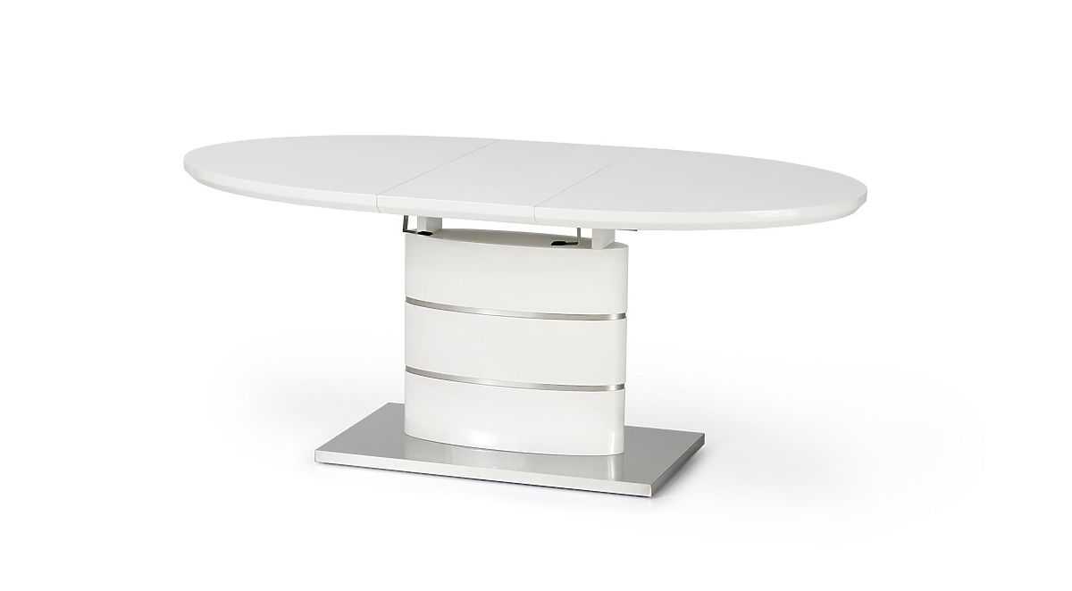Ausziehbarer Tisch aus lackiertem MDF und Edelstahl. .. mehr