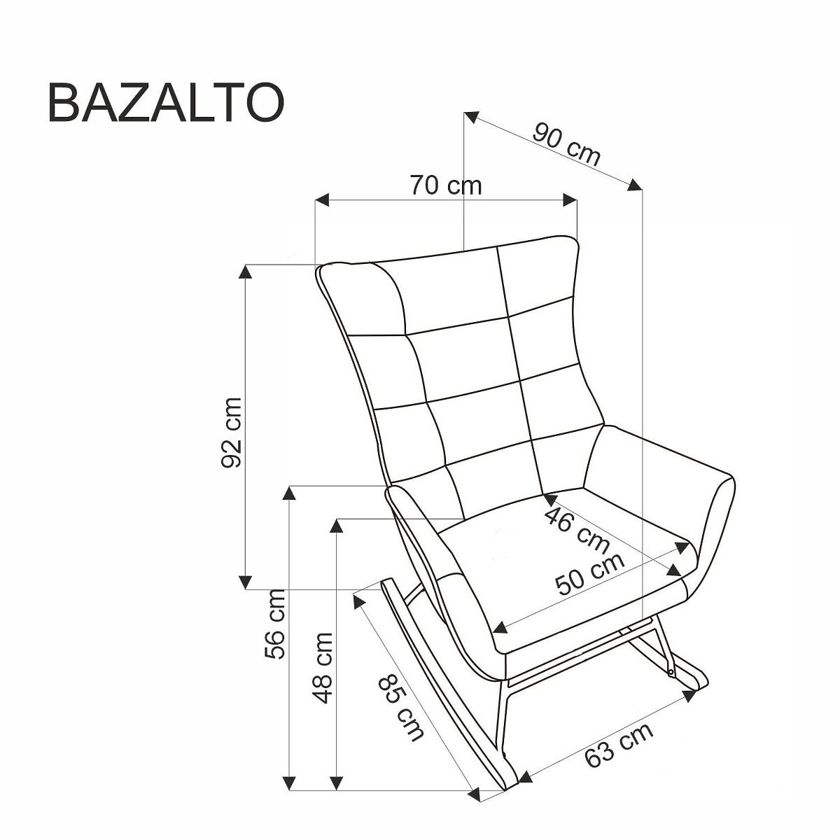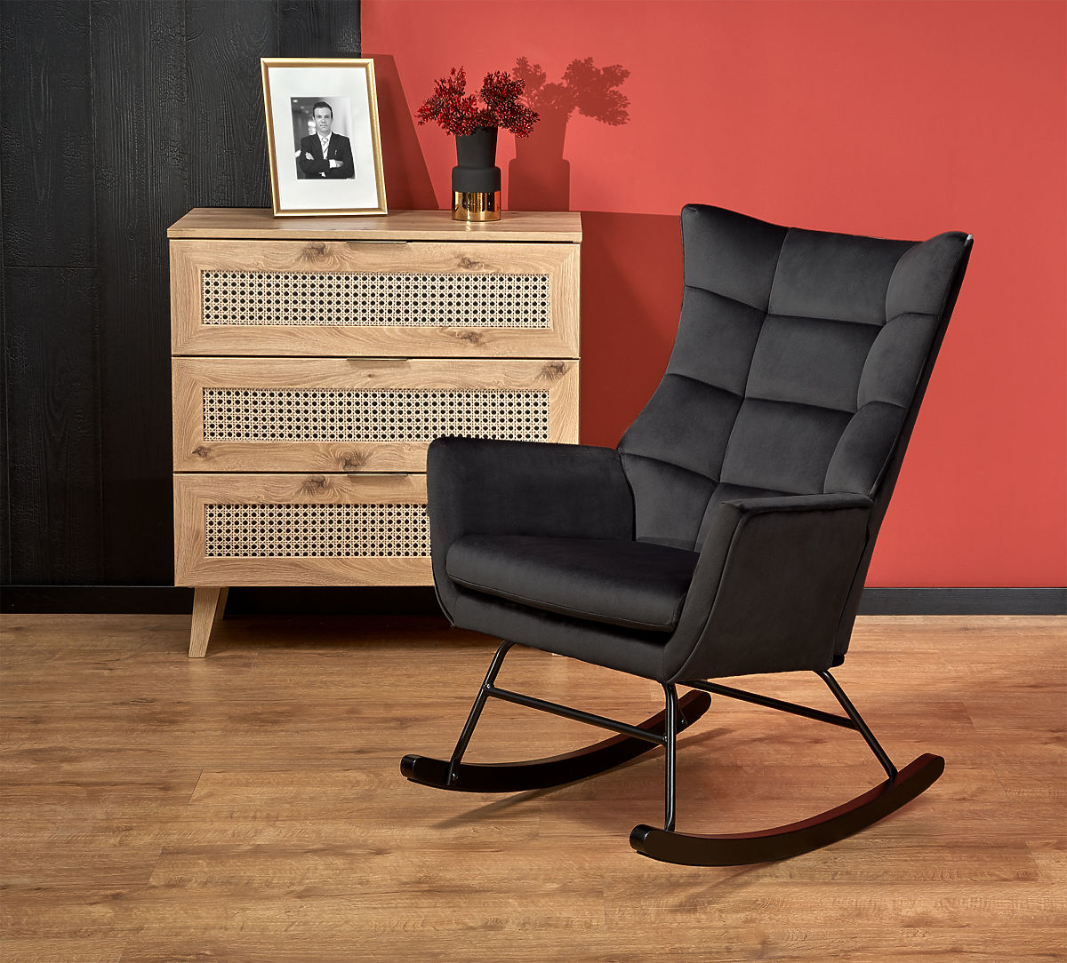 Schwarzer BAZALTO Schaukelstuhl aus Samt und Stahl. .. mehr