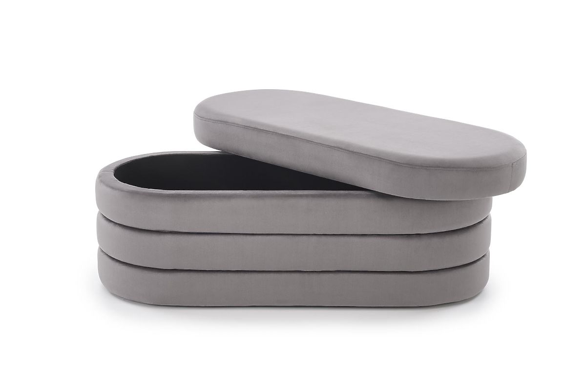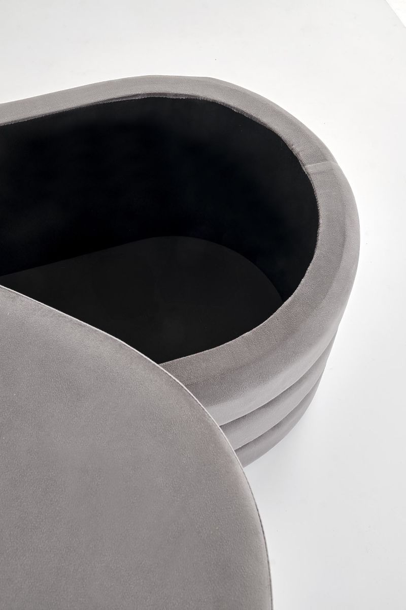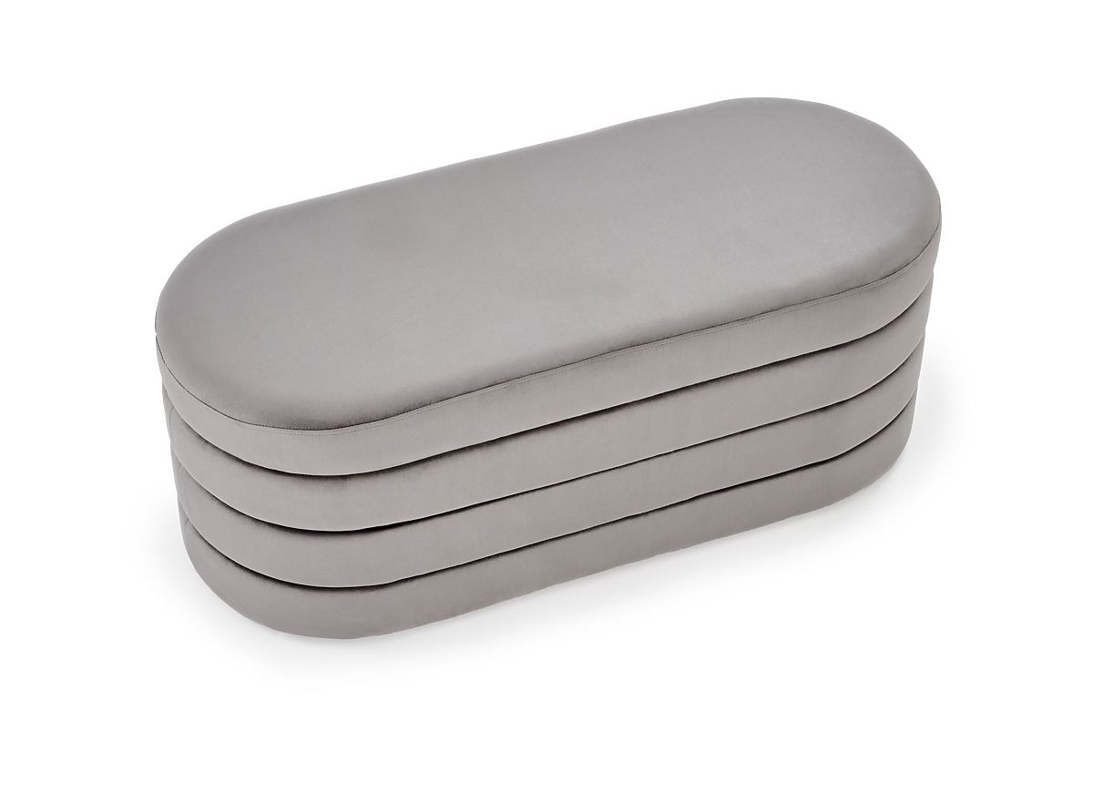 Bank mit Stauraum aus grauem Samtstoff. .. mehr