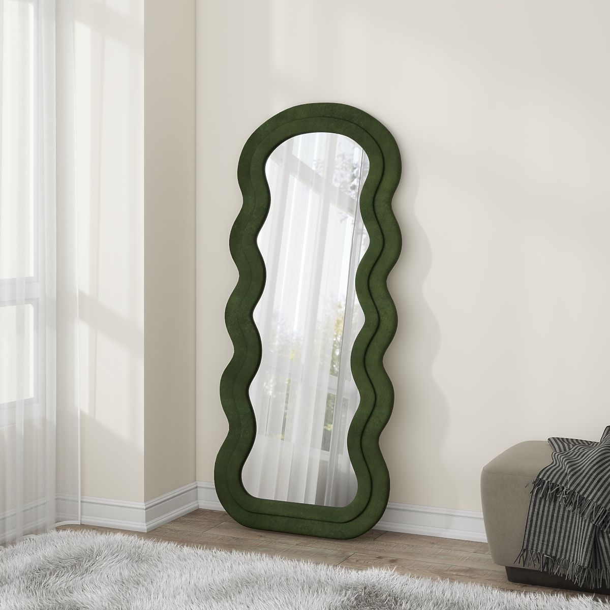 Olivgrüner Stand- oder Wandspiegel mit Samtrahmen. .. mehr