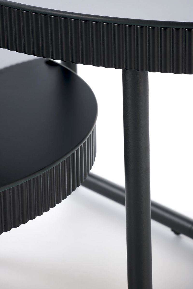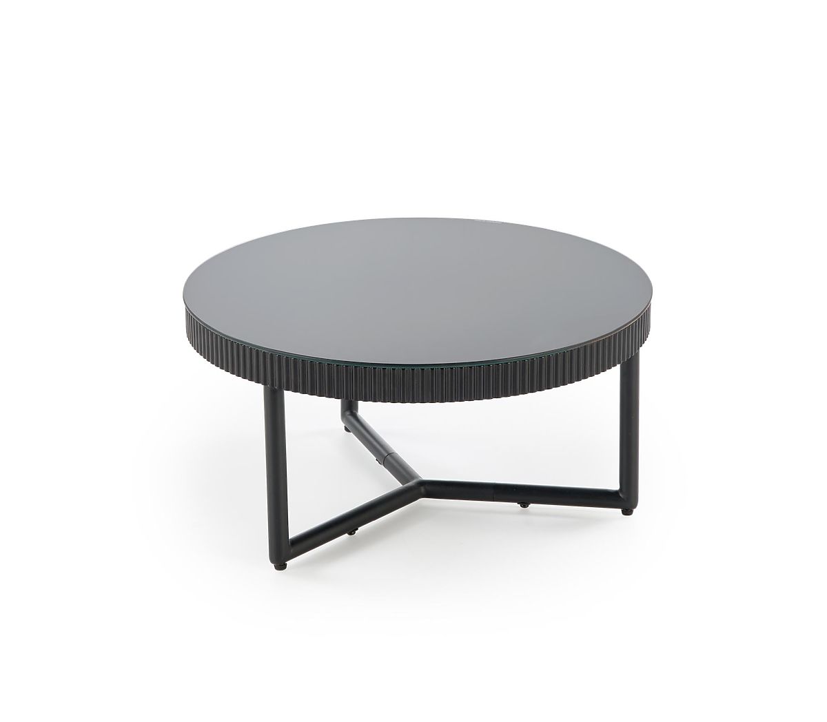 Runder schwarzer Konferenztisch aus Glas und Stahl. .. mehr