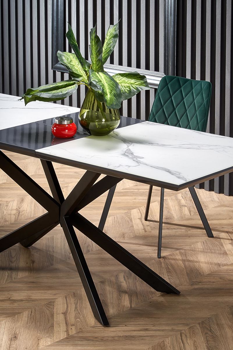 Lukahome.at » Jídelna a kuchyně / Jídelní stoly / DIESEL ausziehbarer Tischplatte - weißer Marmor / dunkelgrau, Beine - schwarz (2p=1 Stk)