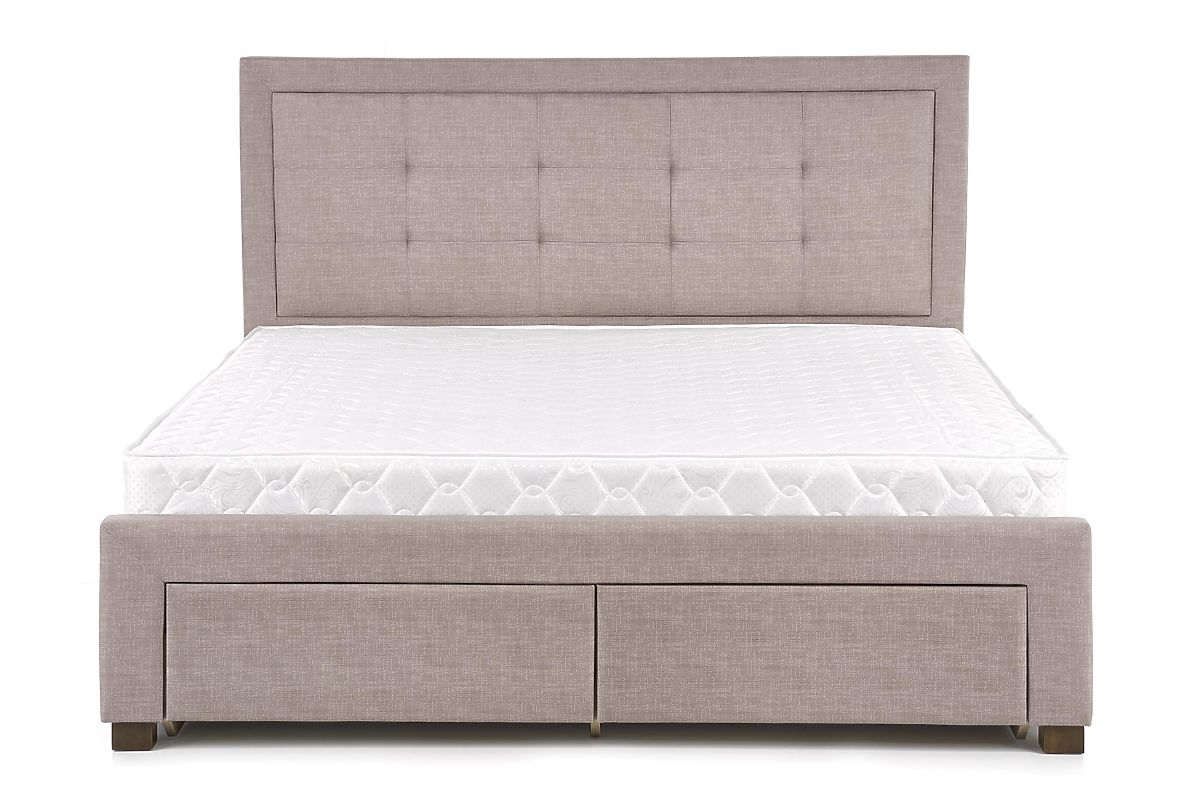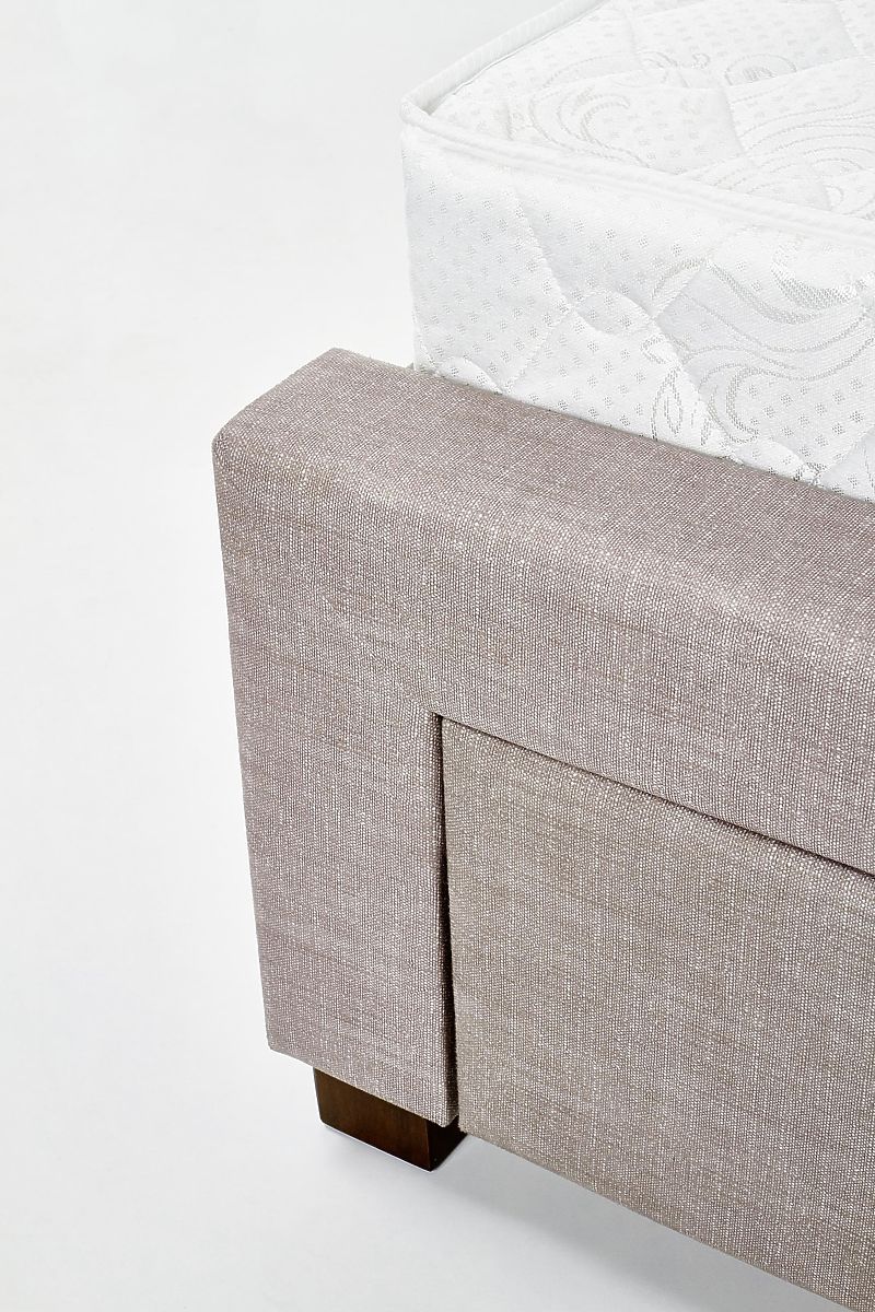 Bett mit Schubladen aus Stoff und Massivholz. .. mehr