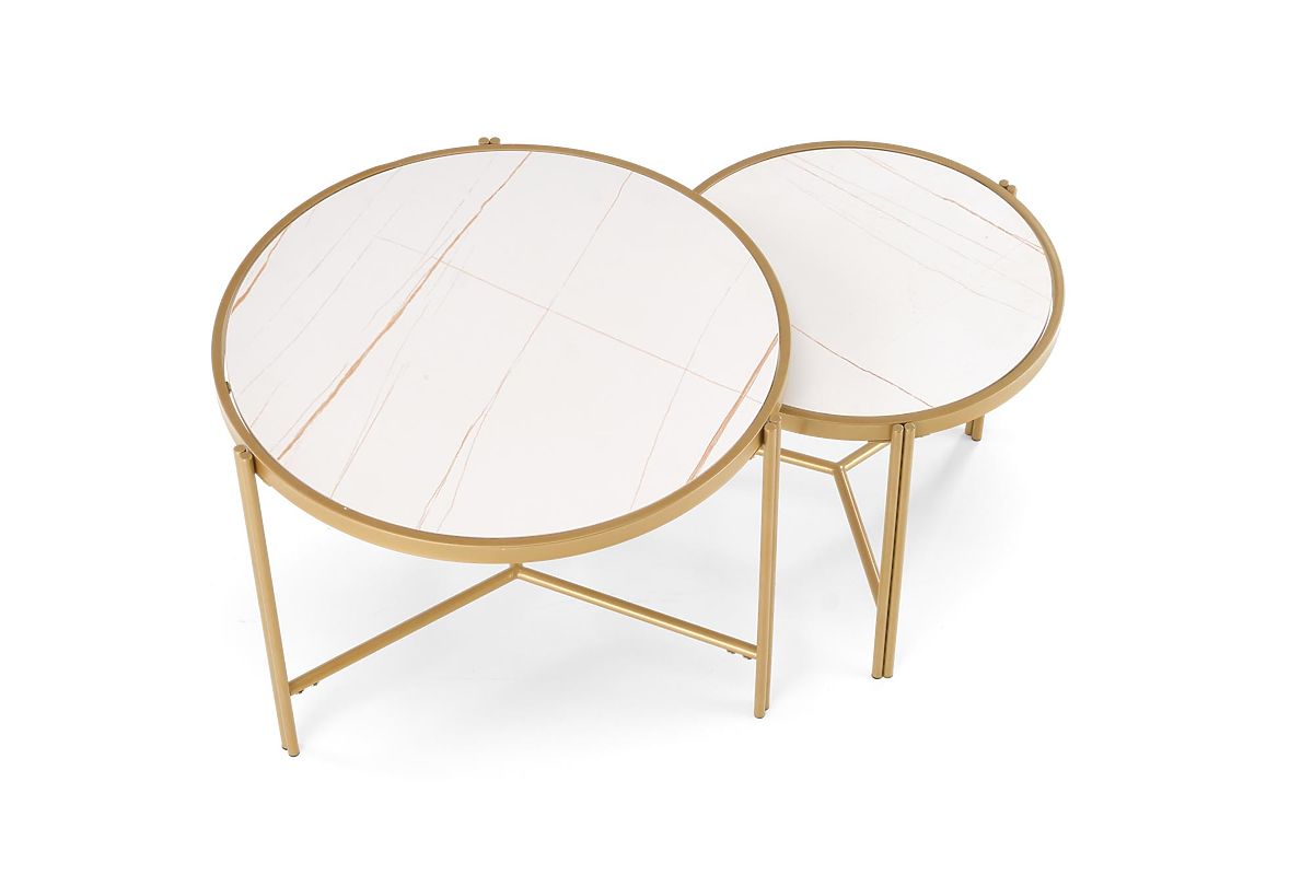 Lukahome.at » Stoly a stolky / Konferenční stolky / FATIMA Set aus 2 Tischen, weißer Marmor / Gold (1p=1Stk)