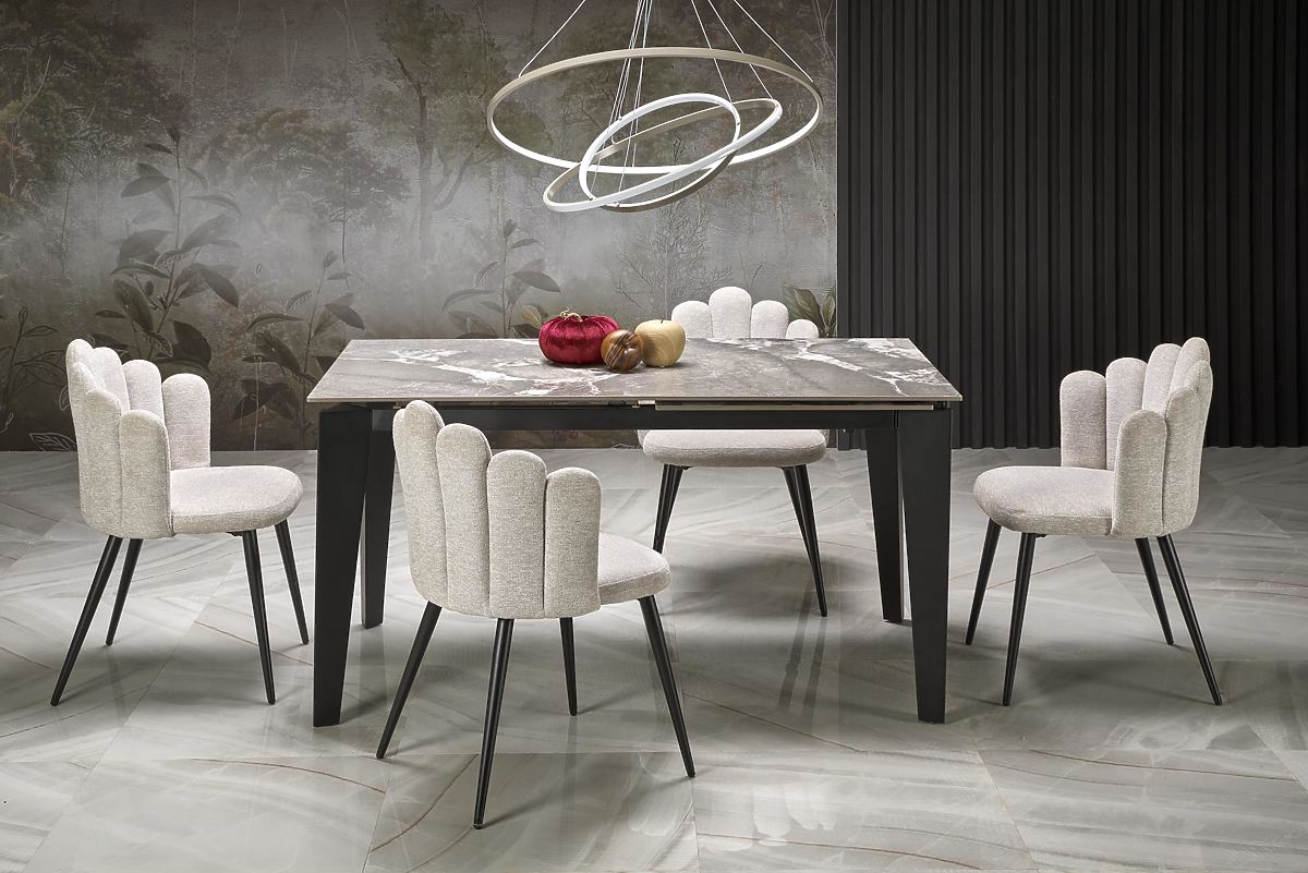 Lukahome.at » Jídelna a kuchyně / Jídelní stoly / FELIX ausziehbarer Tisch, Platte - grauer Marmor, Beine - schwarz (2p=1Stk)