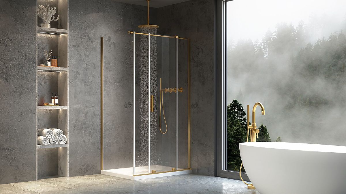 Duschkabine REA Montana Gebürstetes Gold 100x90