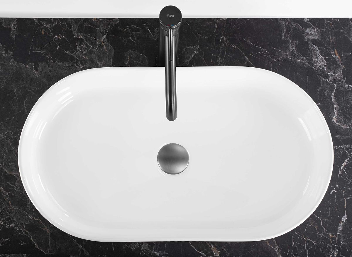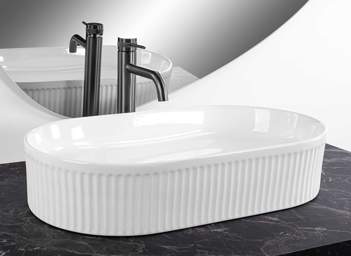 Wir präsentieren Ihnen ein Aufsatzwaschbecken, das Ihrem Badezimmer ein modernes Aussehen und hohe Funktionalität verleiht. Das Waschbecken besteht aus hochwertiger Sanitärkeramik. Die Außenseite ist geriffelt, was einen interessanten visuellen Effekt erzeugt und dem Badezimmer einen einzigartigen Charakter verleiht.