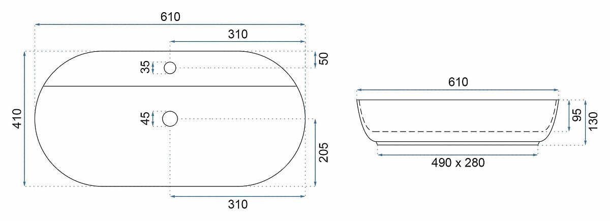 Das Waschbecken Rea Aura in einer interessanten elliptischen Form ergänzt perfekt jedes moderne Interieur. Es ist für die Montage auf einer Platte oder einem Schrank geeignet. Das Waschbecken ist nicht vollständig eingebaut und hat einen Ausschnitt hinten an der Montageöffnung für die Armatur.