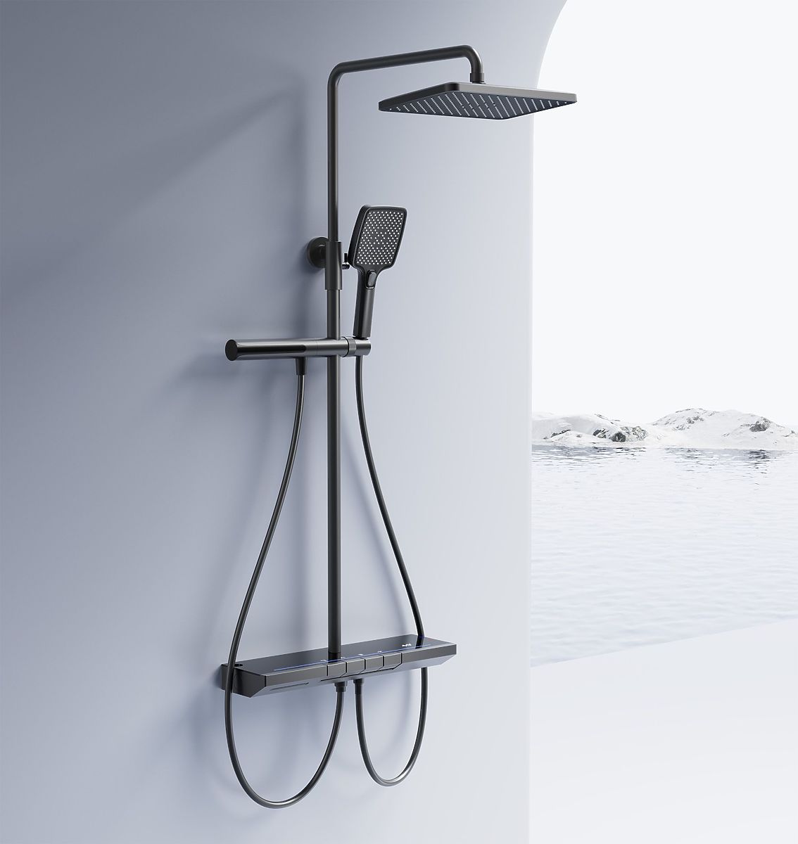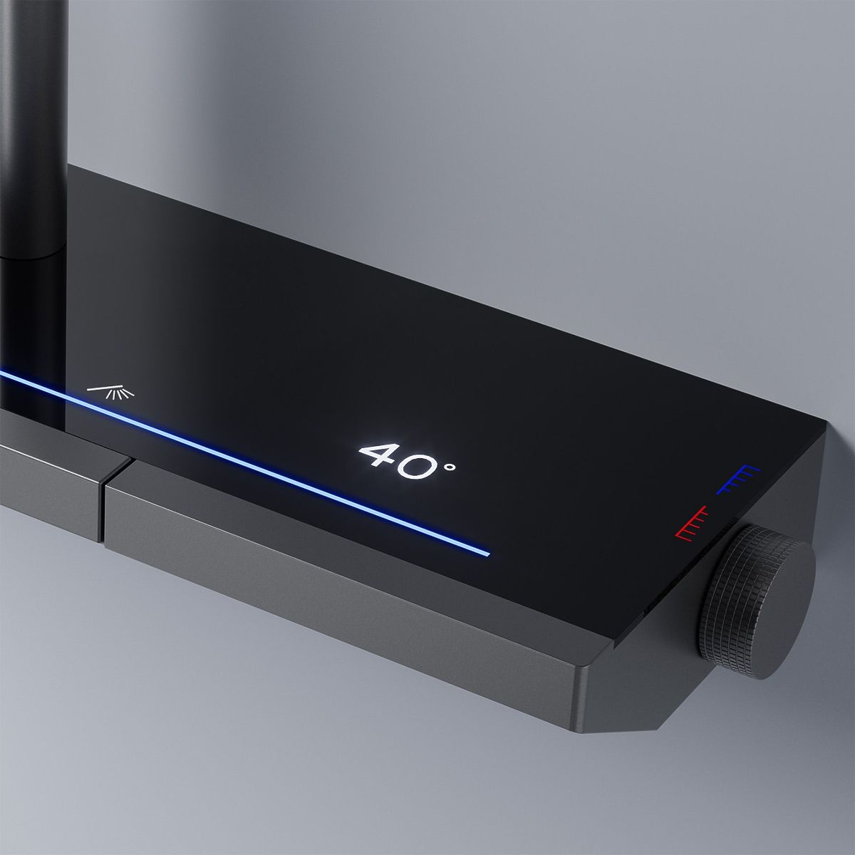 Das Set ist mit einem Thermostat, einem intuitiven Bedienfeld mit beleuchteten Tasten und einem modernen LED-Display ausgestattet, das über die Wassertemperatur informiert – ohne Anschluss an das Stromnetz.