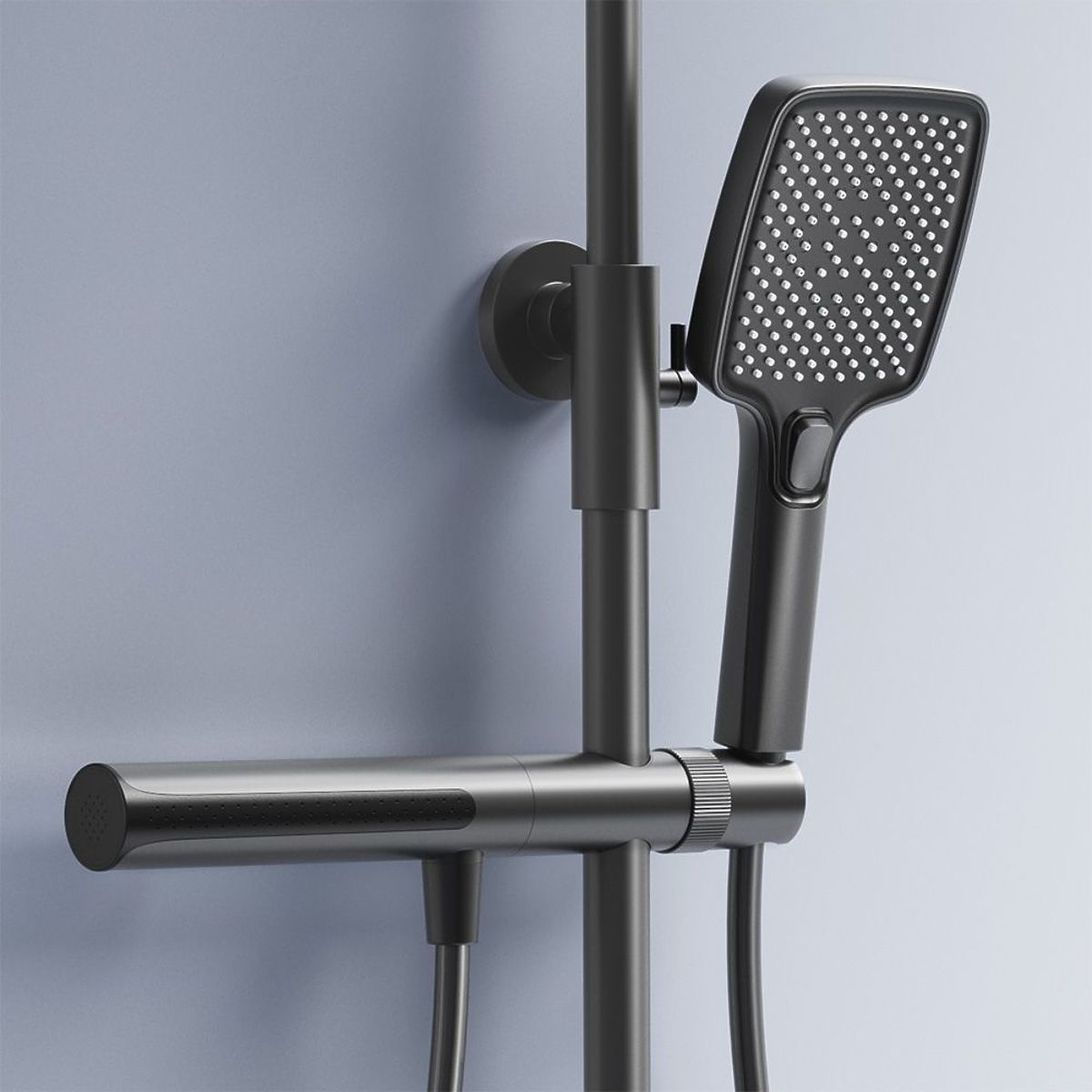 Besondere Aufmerksamkeit verdient die erweiterte Funktionalität: Im Halter des Sets ist eine ausziehbare, zweifunktionale Duschbrause mit Kaskaden- und Seitenwasserstrahl integriert, die als praktisches Bidet dienen kann. Zusätzlich enthält das Set eine klassische Duschbrause mit modernem Aussehen – ausgestattet mit einem Wasserstrahlschalter und einer Regendusche.