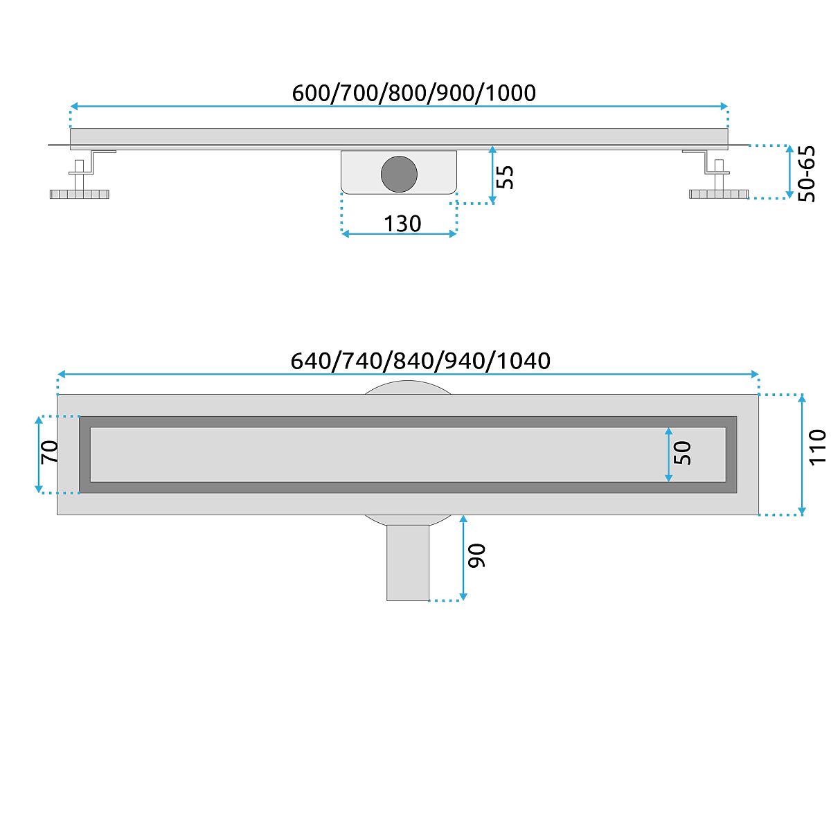 Er füllt Ihren Badezimmerbereich hervorragend aus und bewahrt das makellose Erscheinungsbild und die Ästhetik des Interieurs. Der Abfluss besteht aus hochwertigem Edelstahl Aisi 304. Die Abdeckung im Abfluss ist beidseitig, was es uns ermöglicht, zwischen zwei Ausführungen zu wählen – Aluminium oder eingelegte Fliese, wodurch der Abfluss an jede Badezimmergestaltung angepasst werden kann. Der lineare Abfluss ist mit einem Trockensiphon ausgestattet.
