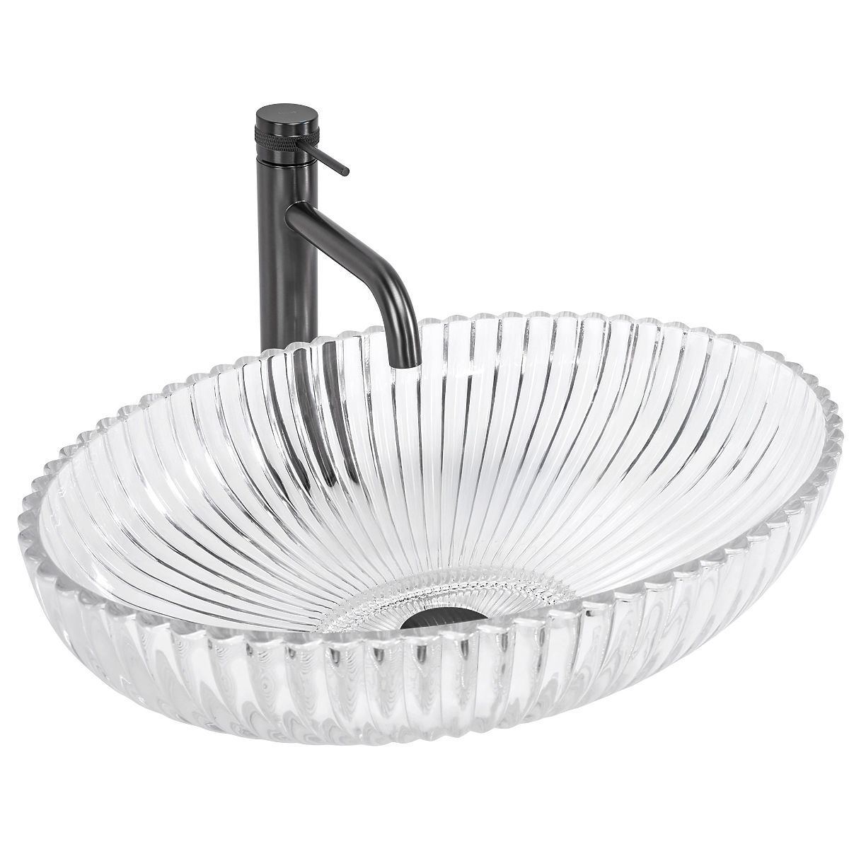 Das zeitlose Waschbecken Nicole ist die perfekte Kombination aus Eleganz und Funktionalität. Hergestellt aus hochwertigem gehärtetem Glas, besticht es durch präzise Verarbeitung und eine einzigartige, geriffelte Struktur, die das Licht wunderschön reflektiert und in jedem Badezimmer einen luxuriösen Effekt erzeugt. Dank seines zeitlosen Designs eignet es sich hervorragend sowohl für die Montage auf einer Platte als auch auf einem Badezimmerschrank und harmoniert mit modernen und klassischen Arrangements. Kratzfestigkeit und einfache Pflege machen es zu einer stilvollen und praktischen Wahl für anspruchsvolle Nutzer.