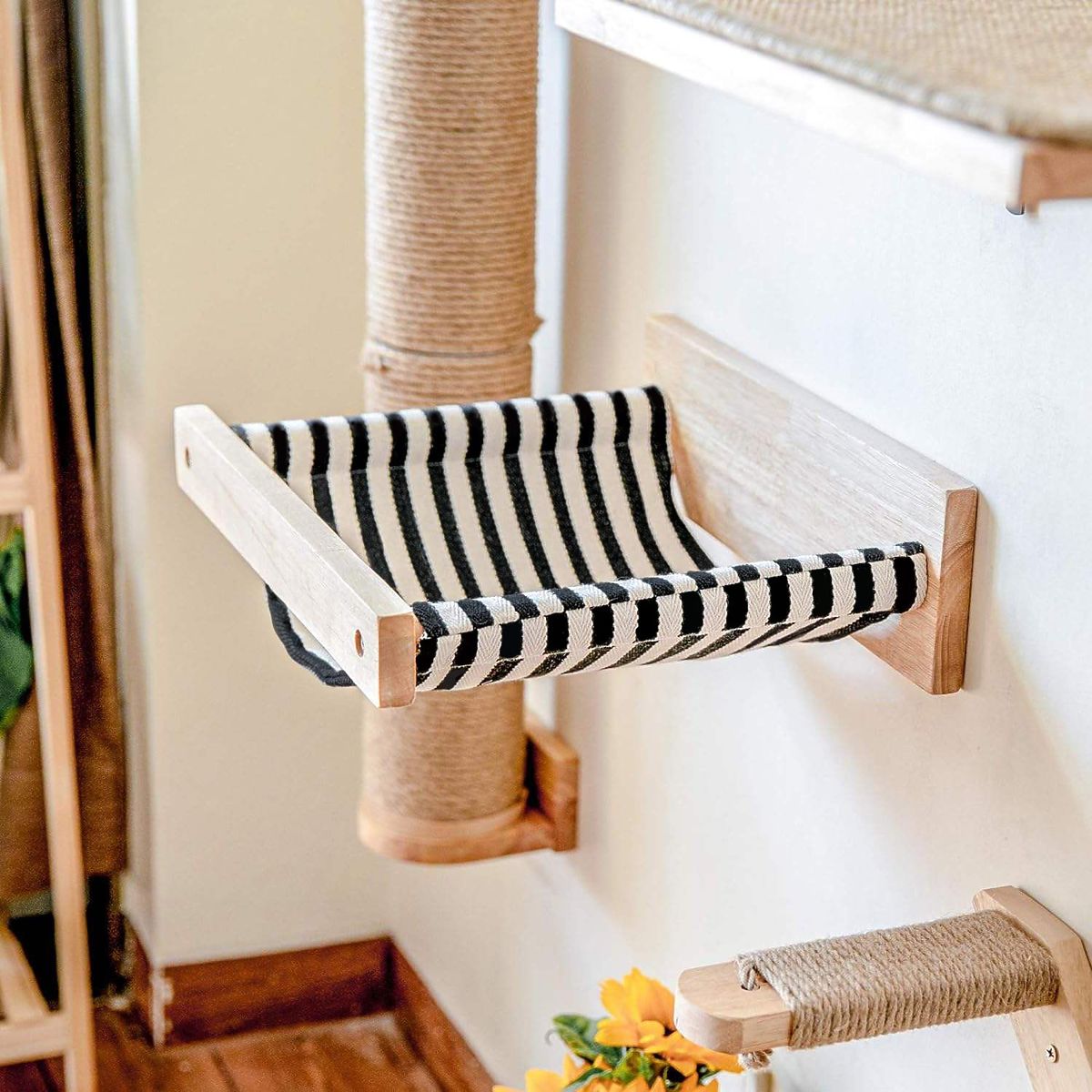 Wir präsentieren Ihnen eine strapazierfähige und ästhetische Hängematte für Katzen. Sie ist ein idealer Ort zum Ausruhen, dient aber auch als Spielplatz für Ihre Katze. Die Hängematte kann mit weiteren Wandkomponenten kombiniert werden, um einen Parcours für unsere pelzigen vierbeinigen Freunde zu schaffen. Dank der Verwendung hochwertiger Materialien ist die Hängematte auch für große Katzen geeignet.