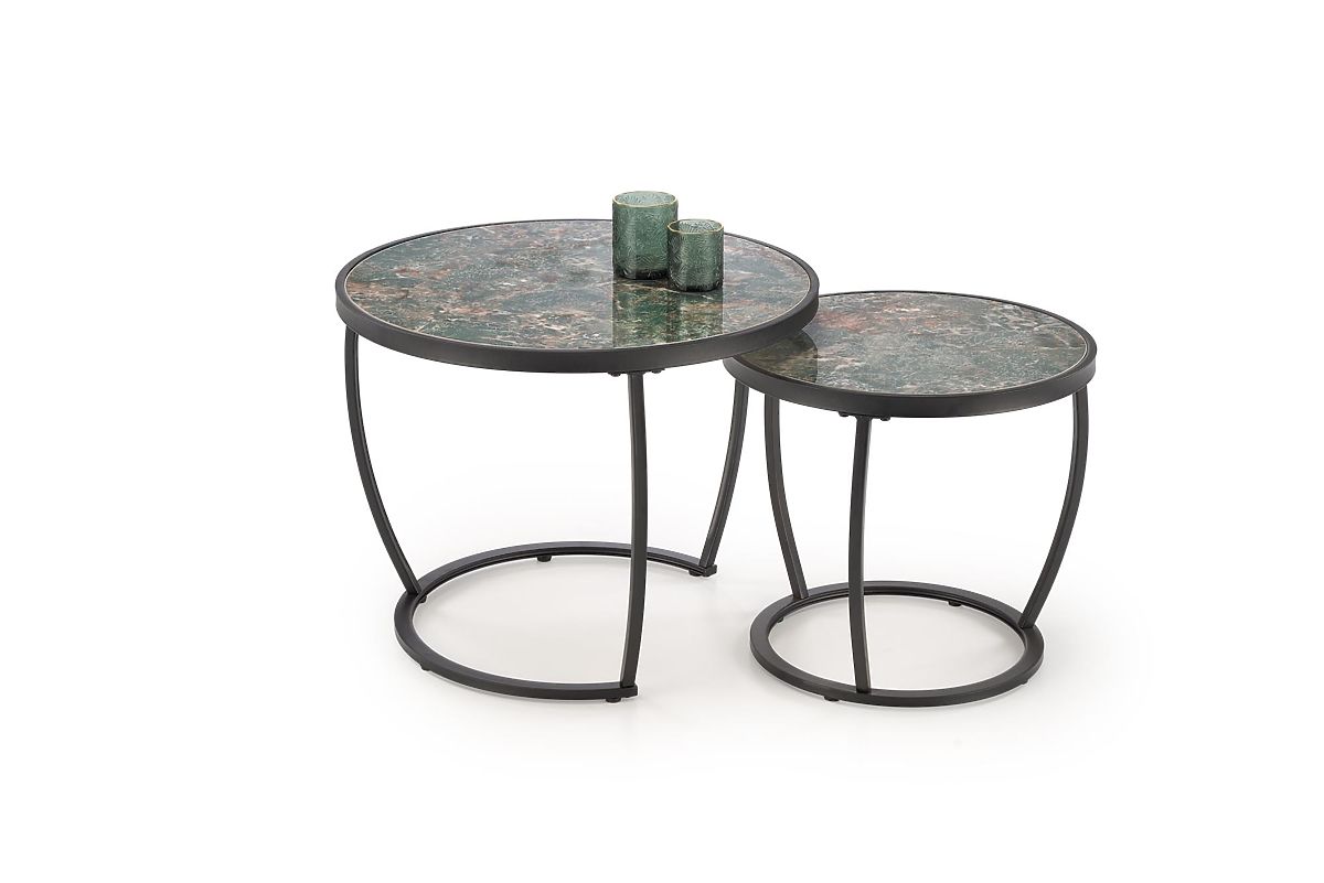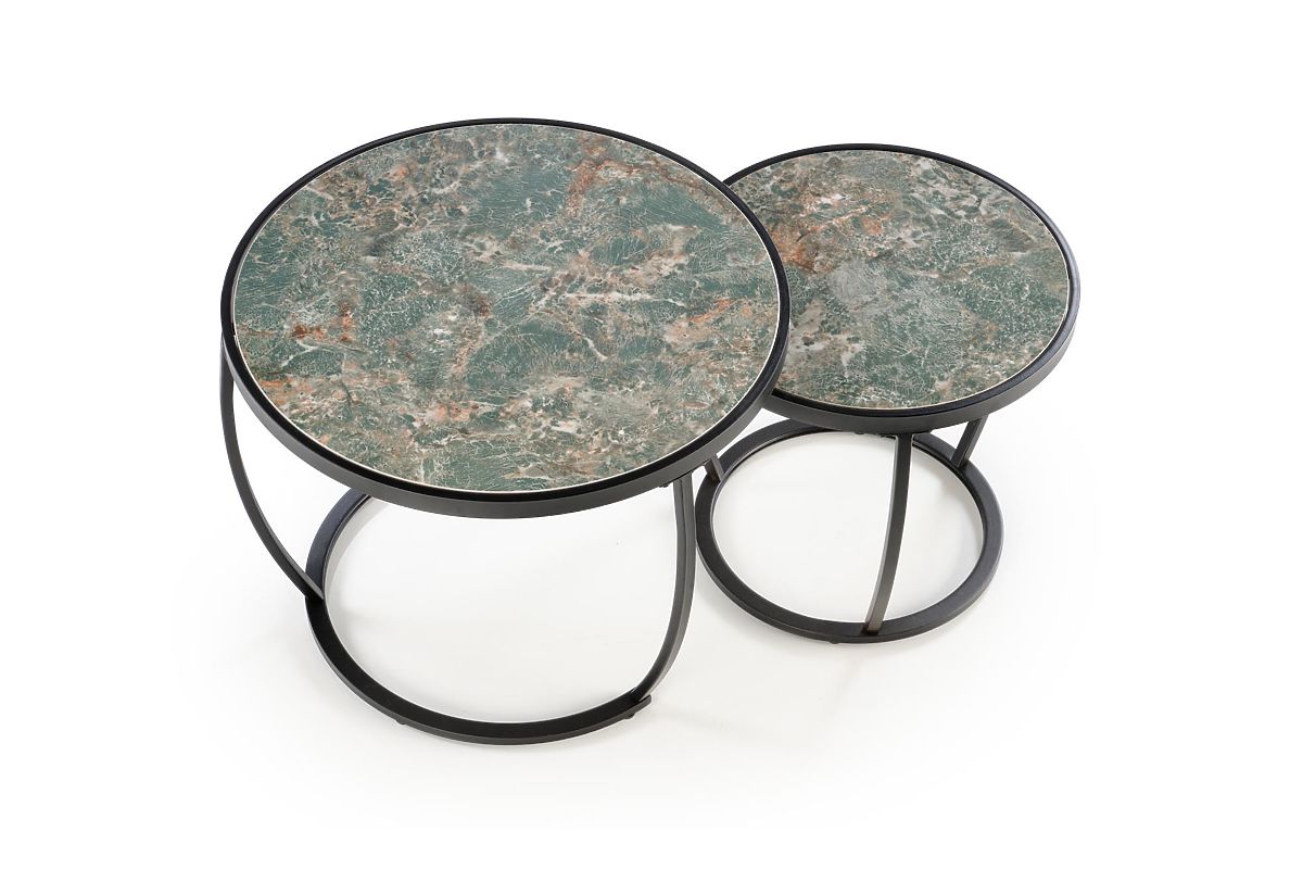 Lukahome.at » Stoly a stolky / Konferenční stolky / INES Set aus 2 Tischen, grüner Marmor / schwarz (1p=1set)