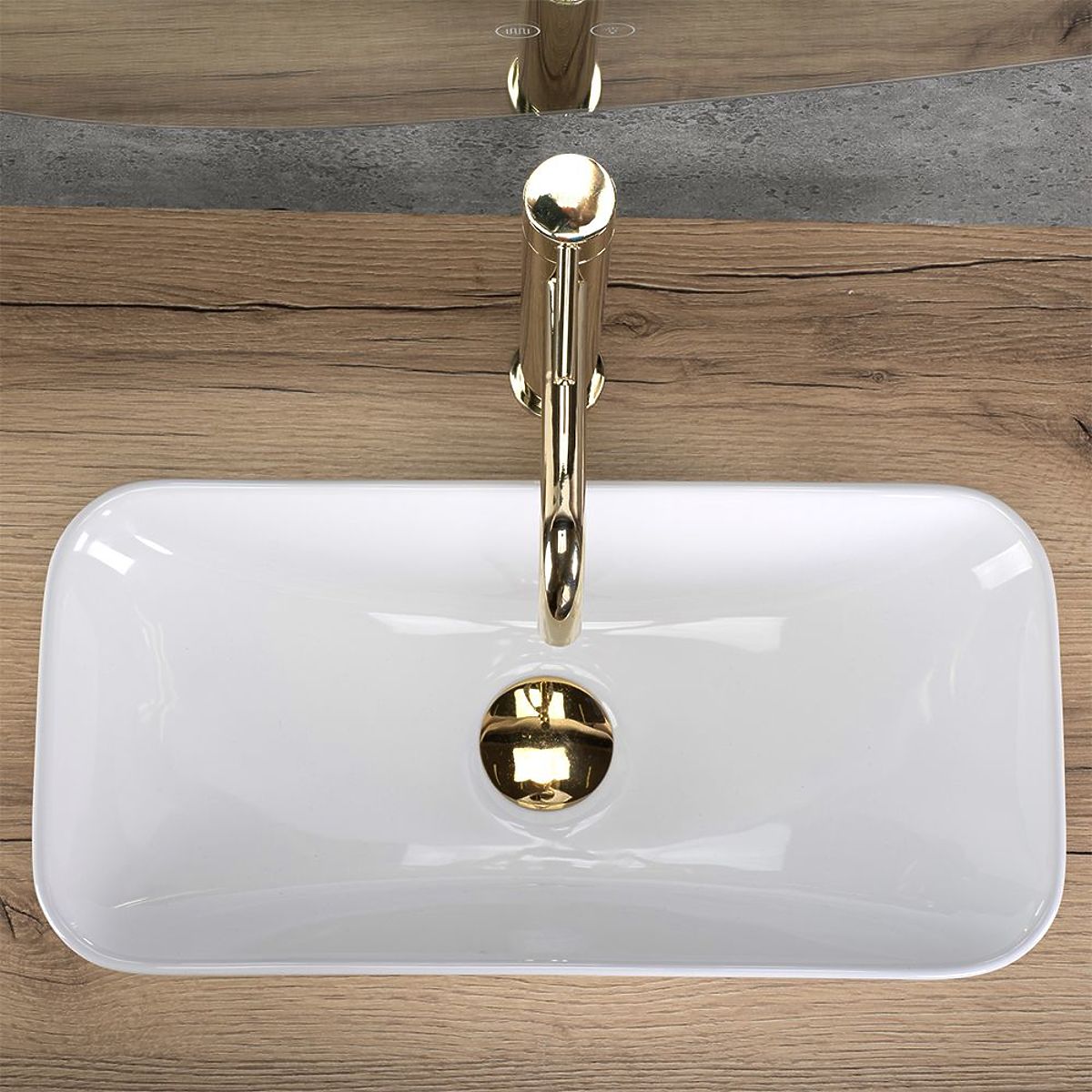 Das Waschbecken besteht aus hochwertiger Sanitärkeramik, was Langlebigkeit, Kratzfestigkeit und einfache Pflege gewährleistet. Es ist die ideale Lösung für diejenigen, die Ästhetik und Komfort im täglichen Gebrauch schätzen.