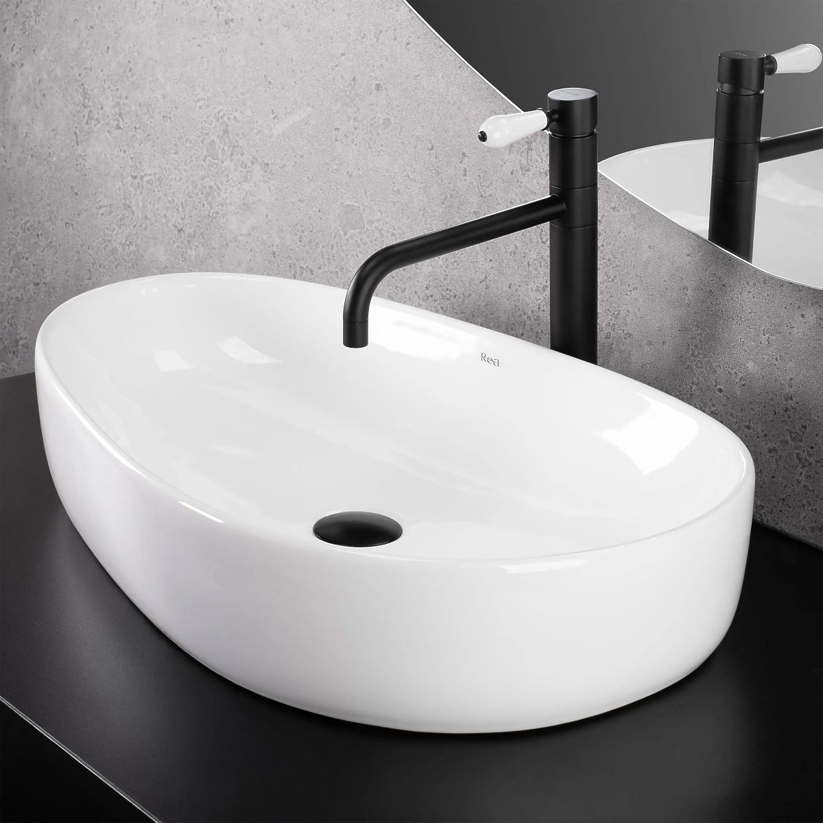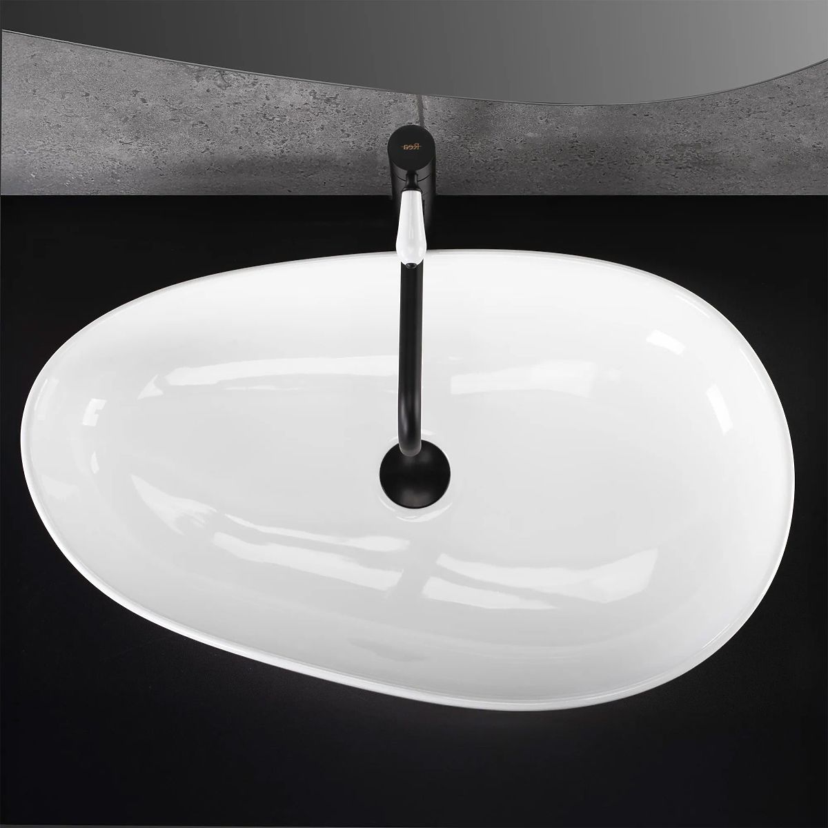 Sandra ist ein Waschbecken, das direkt auf die Platte montiert wird, was eine platzsparende Gestaltung des Badezimmers ermöglicht. Die interessante Form in Form eines unregelmäßigen Tropfens verleiht dem Badezimmer einen sanften, aber außergewöhnlichen Akzent.