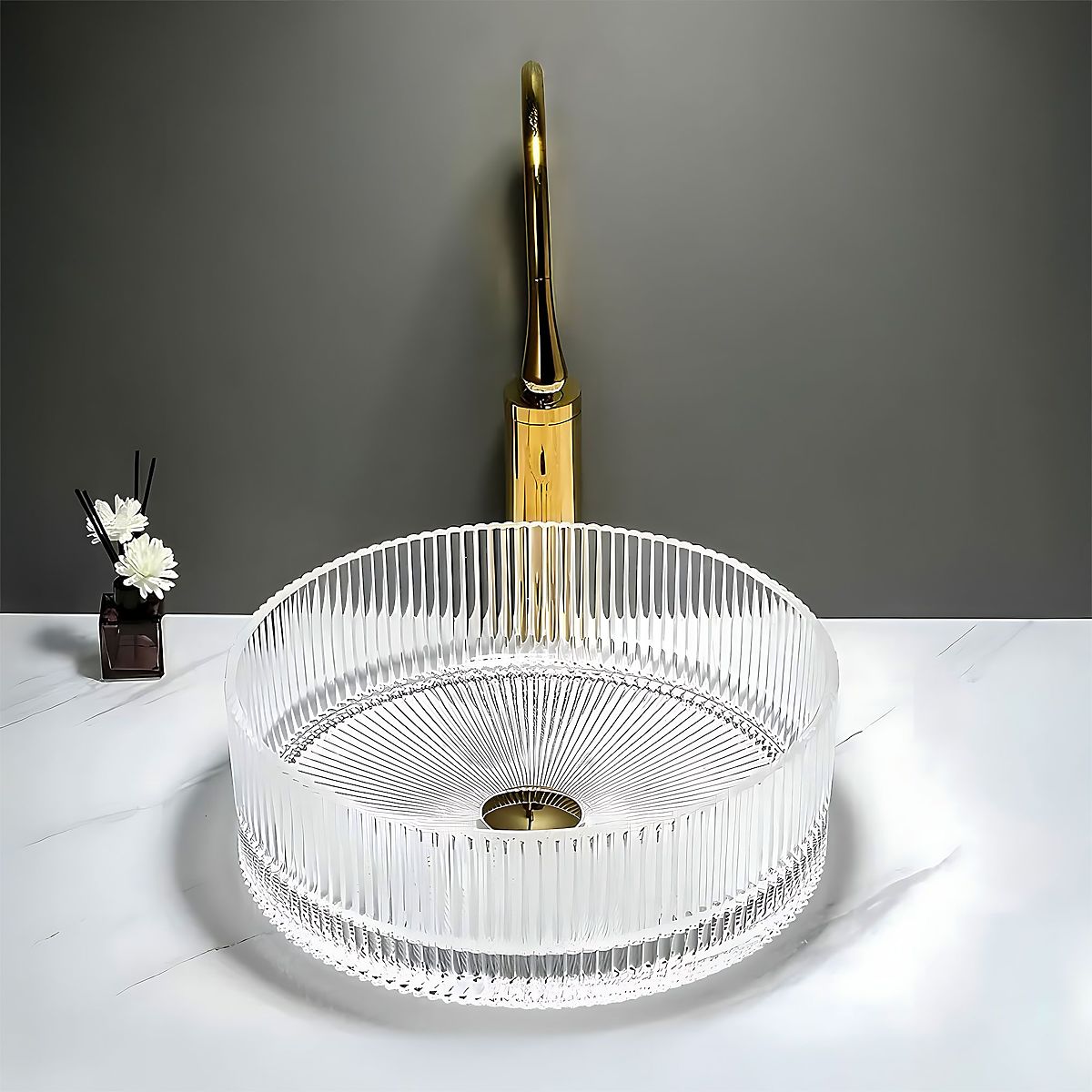 Das Möbelwaschbecken Ingrid 36 ist die ideale Wahl für alle, die eine elegante und originelle Lösung für ihr Badezimmer suchen. Hergestellt aus hochwertigem Glas, besticht es durch seine geriffelte Oberfläche und die transparente Ausführung, die dem Interieur einen einzigartigen Charakter und luxuriösen Stil verleiht.