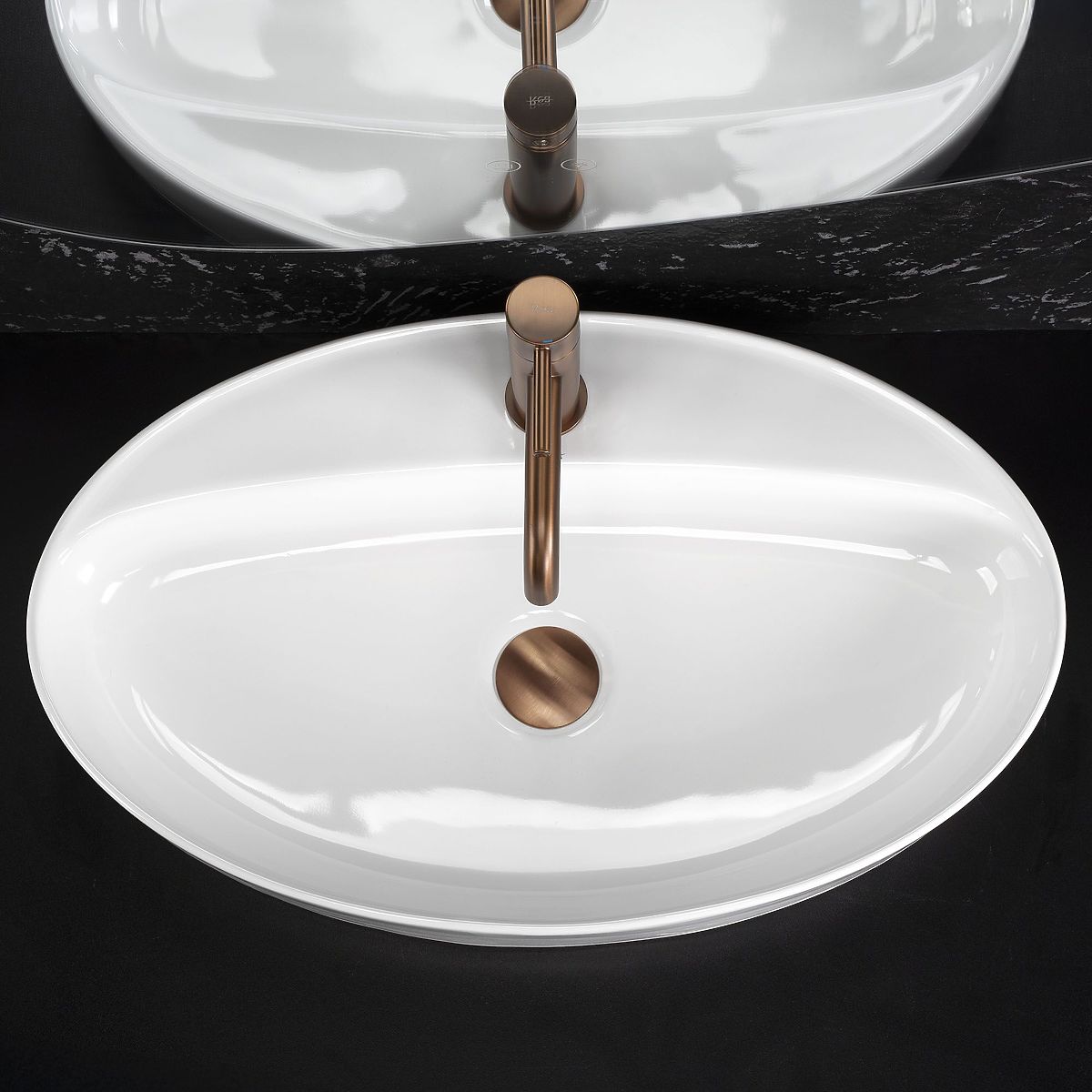 Das Aufsatzwaschbecken Nastazja ist eine elegante und funktionale Wahl, die modernes Design perfekt mit Praktikabilität verbindet. Seine sanfte, ovale Form und die weiße Farbe sorgen dafür, dass das Waschbecken sowohl in klassische als auch moderne Badezimmer passt und dem Raum Wärme und einen stilvollen Charakter verleiht.\n\nDas Waschbecken verfügt über eine Ablage mit einer Öffnung für die Armatur, was es noch funktionaler macht. Hergestellt aus hochwertiger Sanitärkeramik, ist es langlebig, widerstandsfähig gegen Beschädigungen und leicht zu reinigen. Die Montage auf der Platte ermöglicht eine maximale Raumausnutzung im Badezimmer und schafft gleichzeitig eine elegante, minimalistische Komposition.