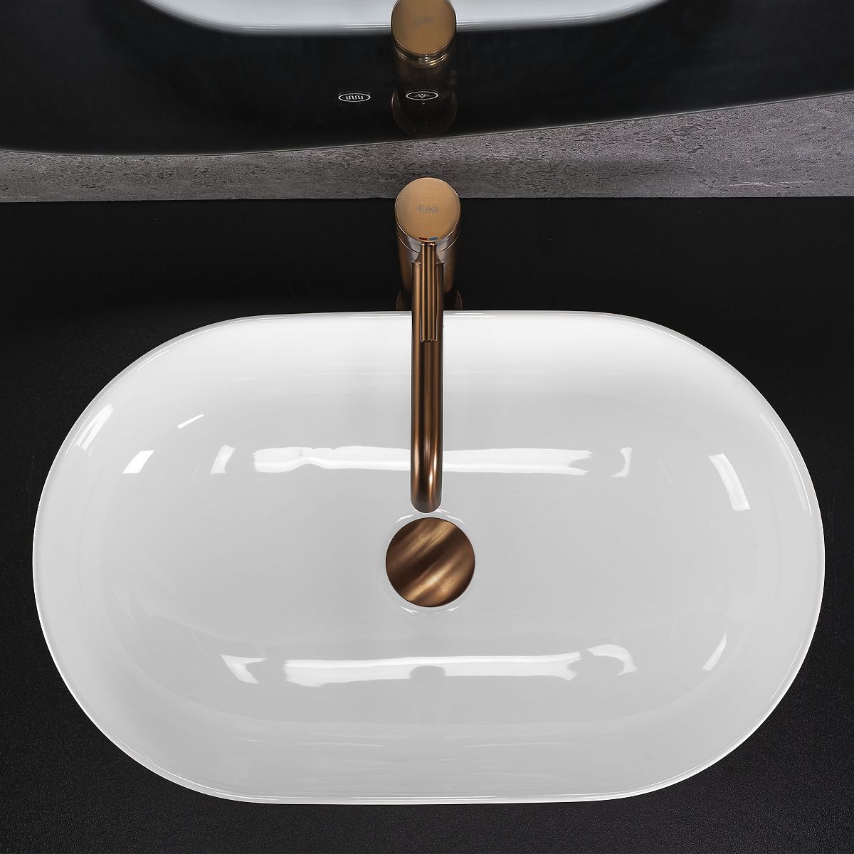 Das zeitlose Waschbecken Amelia 52 ist ein elegantes Modell aus der Amelia-Reihe, die in verschiedenen Größen erhältlich ist, um individuelle Bedürfnisse und die Größe des Badezimmers anzupassen. Seine universelle, ovale Form passt sowohl in minimalistische Arrangements als auch in klassischere Interieurs.