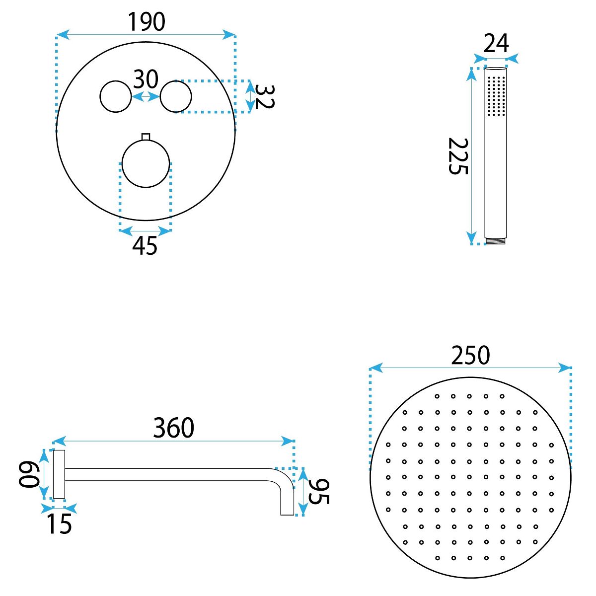 Unterputz-Duschset mit Thermostat Rea Lungo Diamond Gold+ BOX