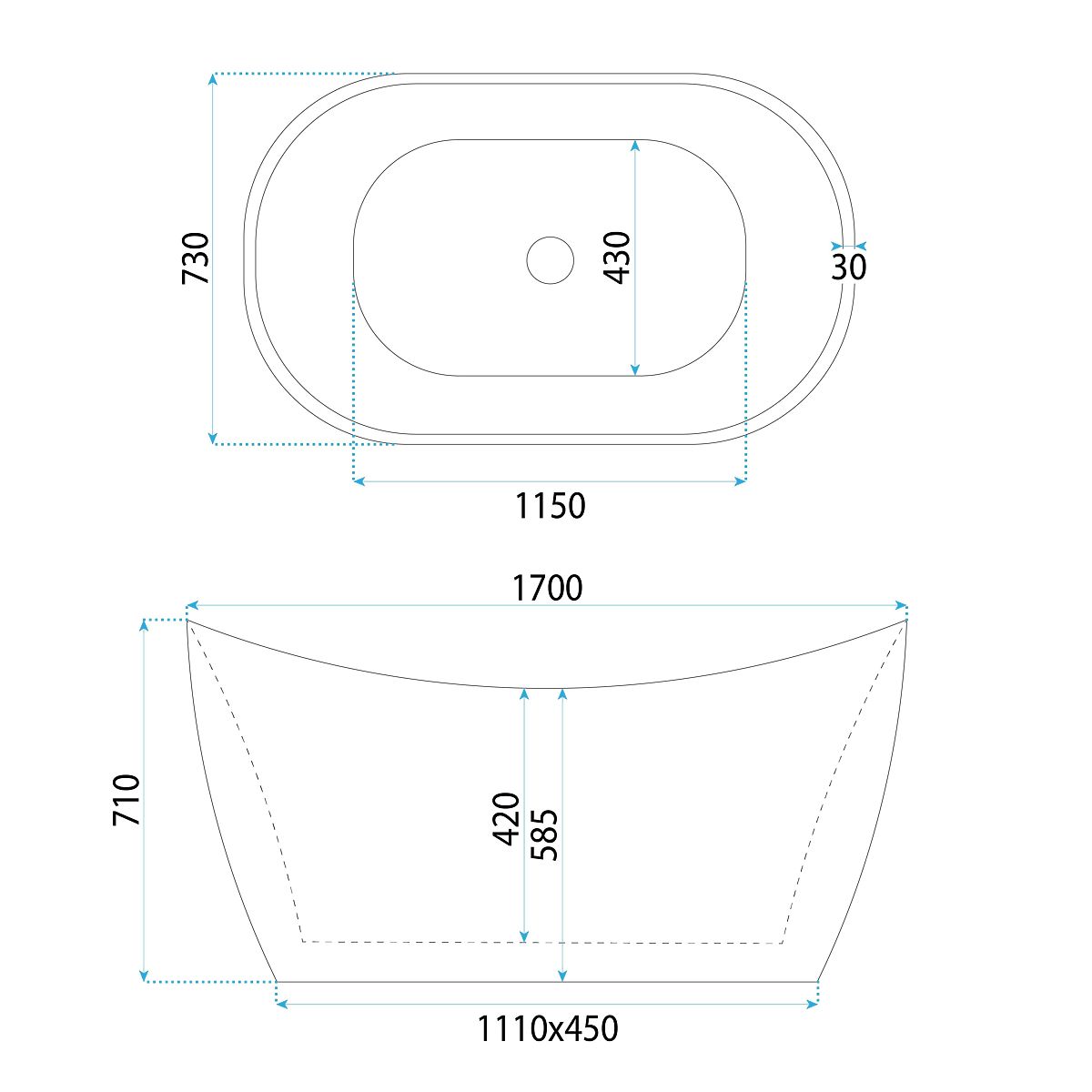 Freistehende Acrylbadewanne ATENA 170