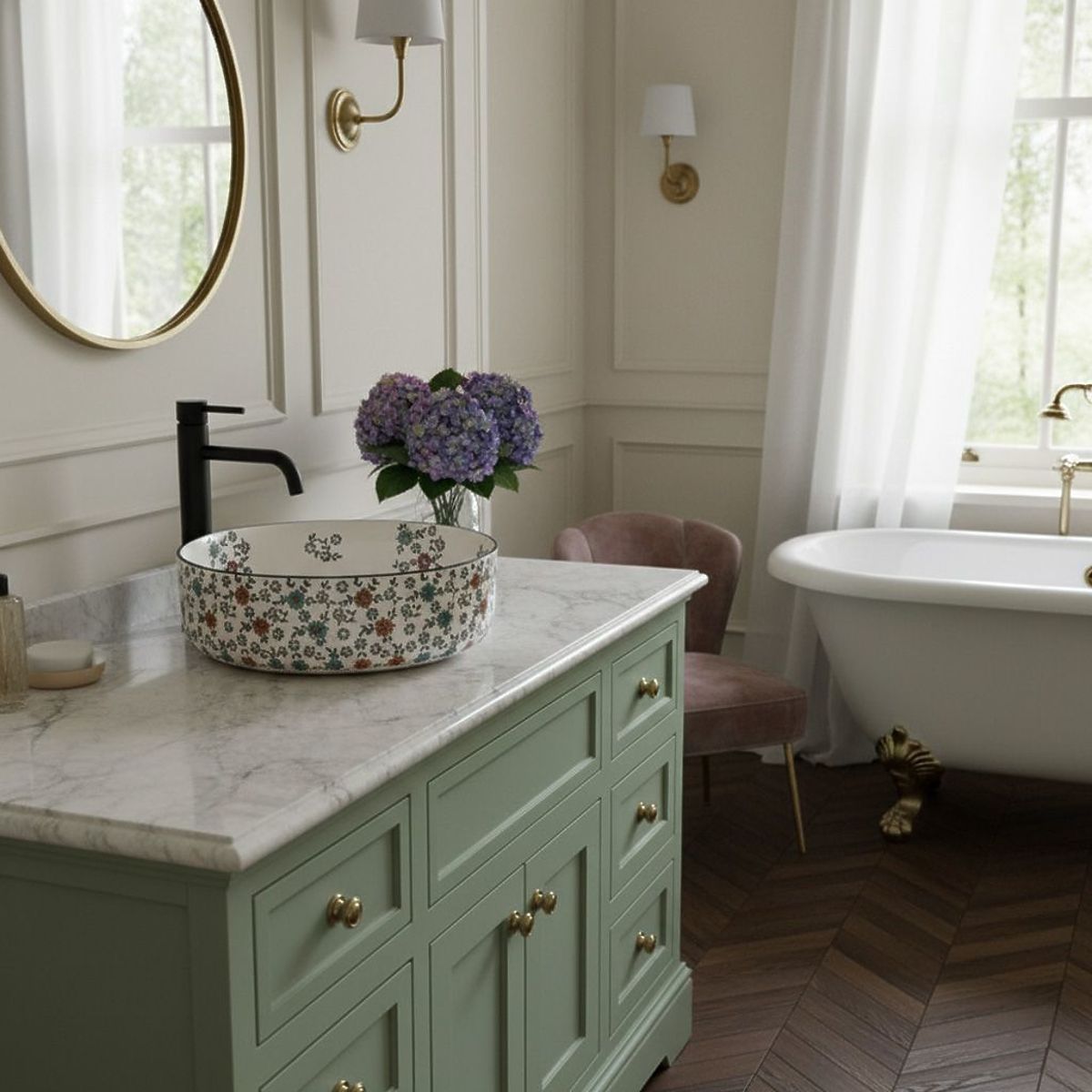 Bringen Sie rustikale Eleganz in Ihr Badezimmer mit dem zeitlosen Waschbecken Rea Stefania Fiori. Dieses außergewöhnliche Modell zeichnet sich durch ein reichhaltiges, mehrfarbiges Blumenmuster aus, das sowohl die Außenfläche als auch das Innere der Schüssel schmückt. Hergestellt aus hochwertiger Sanitärkeramik, vereint es künstlerisches Design mit praktischer Nutzung und passt perfekt in Interieurs im Vintage-Stil. Doppelte Verzierung – ein einzigartiges, volkstümliches Blumenmuster befindet sich sowohl an der Außenwand als auch im Inneren des Waschbeckens. Hochwertige Sanitärkeramik – garantiert Beständigkeit gegen den täglichen Gebrauch und ist äußerst pflegeleicht. Zeitlose Installation – ermöglicht moderne Arrangements und die volle Präsentation der Schönheit des gemusterten Körpers auf jeder Platte. Runde Schüsselform – klassische und zeitlose Form, die sowohl elegant als auch praktisch ist. Ohne Hahnloch – Konstruktion für die Montage mit hohen (stehenden) oder Unterputz- (Wand-) Armaturen. Ohne Überlaufloch – betont das minimalistische und glatte Design der inneren Schüssel und sorgt für eine perfekt glatte Oberfläche. Das zeitlose Waschbecken Rea Stefania Fiori ist eine hervorragende Wahl für diejenigen, die Originalität schätzen und einen markanten, dekorativen Akzent in ihr Interieur bringen möchten. Perfekt in jedem Detail, wird es zum zentralen Punkt jedes rustikalen oder eklektischen Badezimmers.