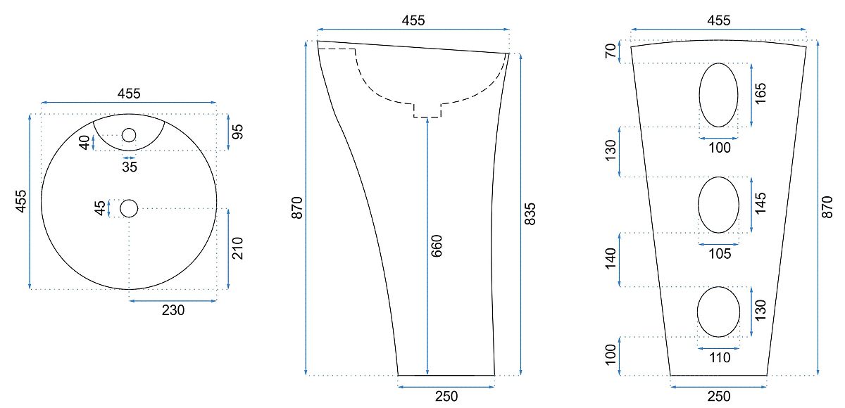 Das freistehende Waschbecken Rea Agnes hat die Maße 45,5 × 45,5 × 87 cm. Seine runde Form und monolithische Gestaltung sorgen dafür, dass es sowohl in große als auch kleinere Badezimmer hervorragend passt. Es ist das ideale Waschbecken für ein Badezimmer, in dem Stil und Funktionalität wichtig sind.