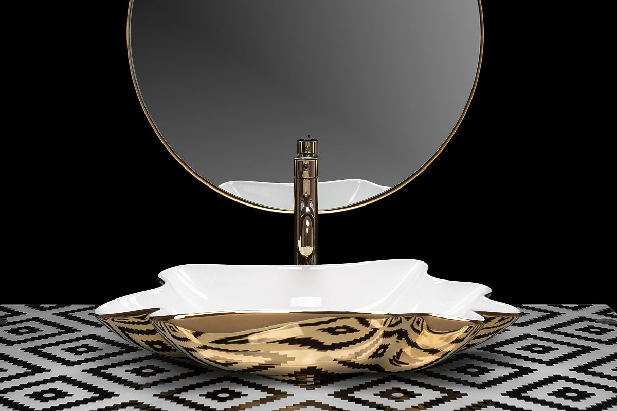 Waschbecken REA Sea Infinity Gold/Weiß + Stöpsel