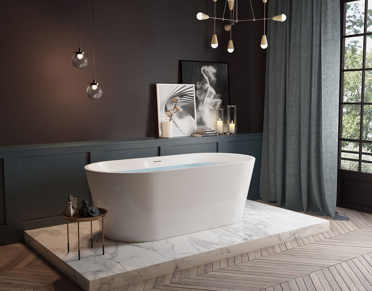 Freistehende Badewanne aus strapazierfähigem Acryl. .. mehr