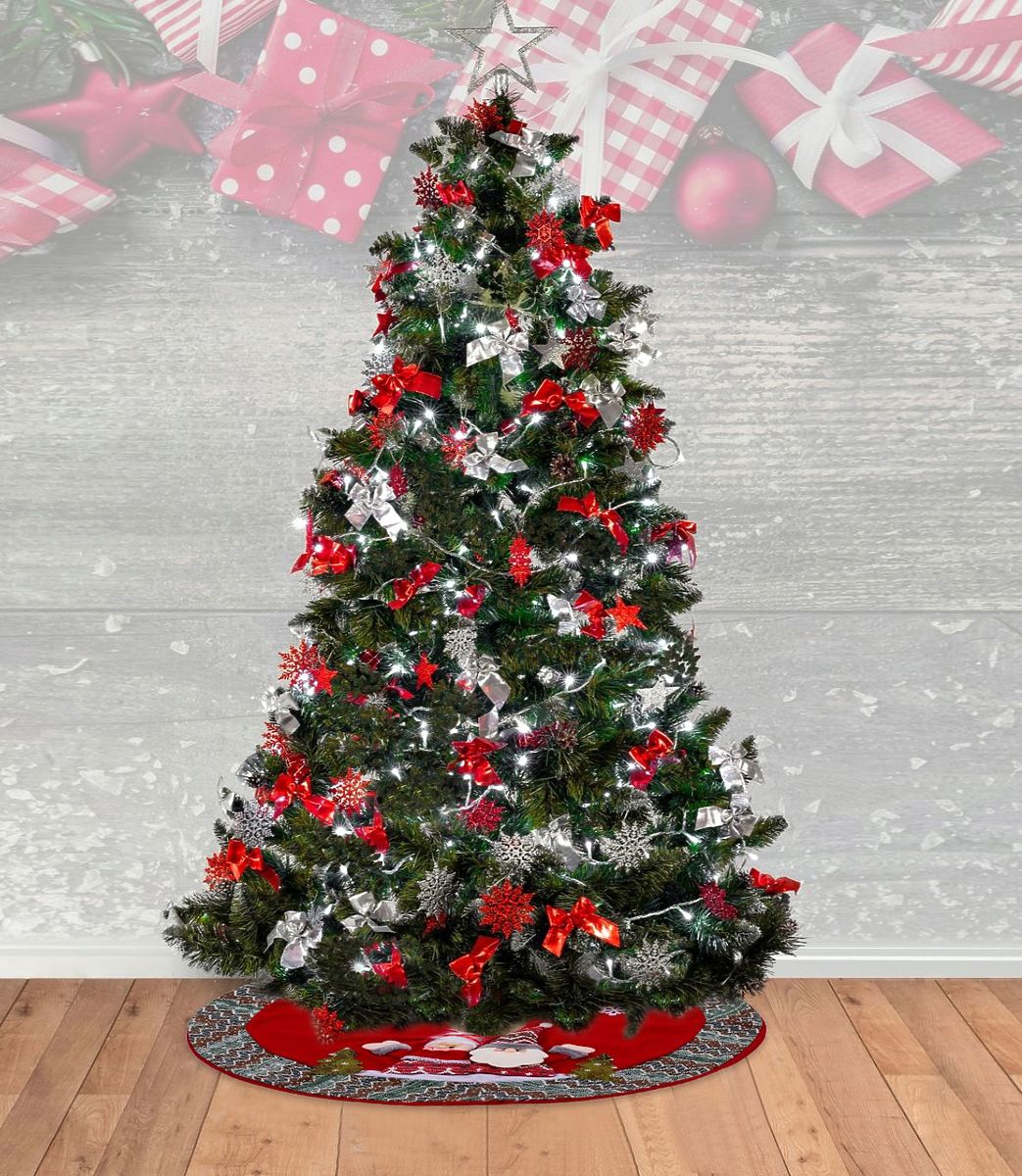 Wir präsentieren Ihnen eine äußerst effektvolle Baumunterlage in roter Farbe. Sie eignet sich hervorragend sowohl für echte als auch für künstliche Bäume. Neben den offensichtlichen ästhetischen Werten erleichtert sie die Sauberkeit unter einem echten Baum zu bewahren. Gefallene Nadeln können einfach ausgeschüttelt und die Dekoration wieder unter den Baum gelegt werden.